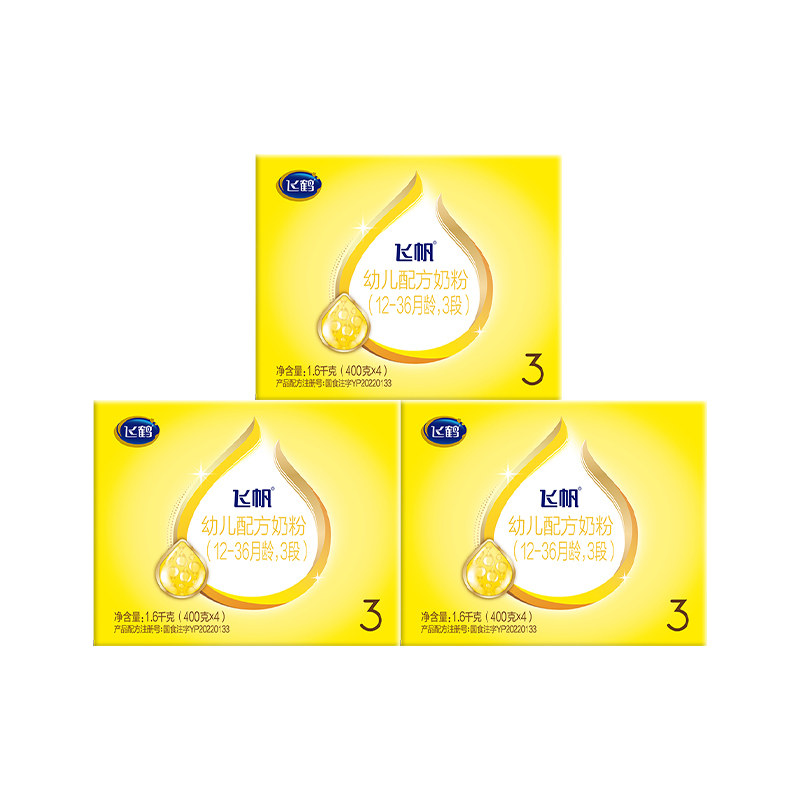 飞鹤飞帆呵护3段奶粉官方旗舰店四连包3盒1600g三段四联 会员