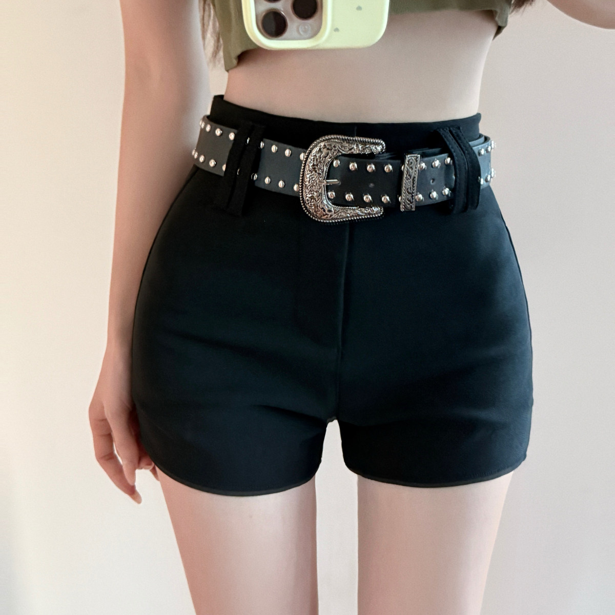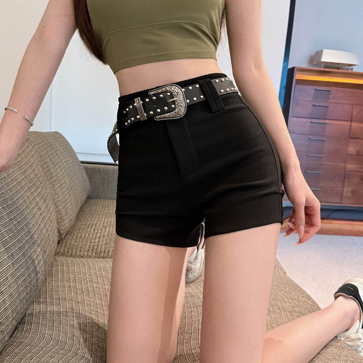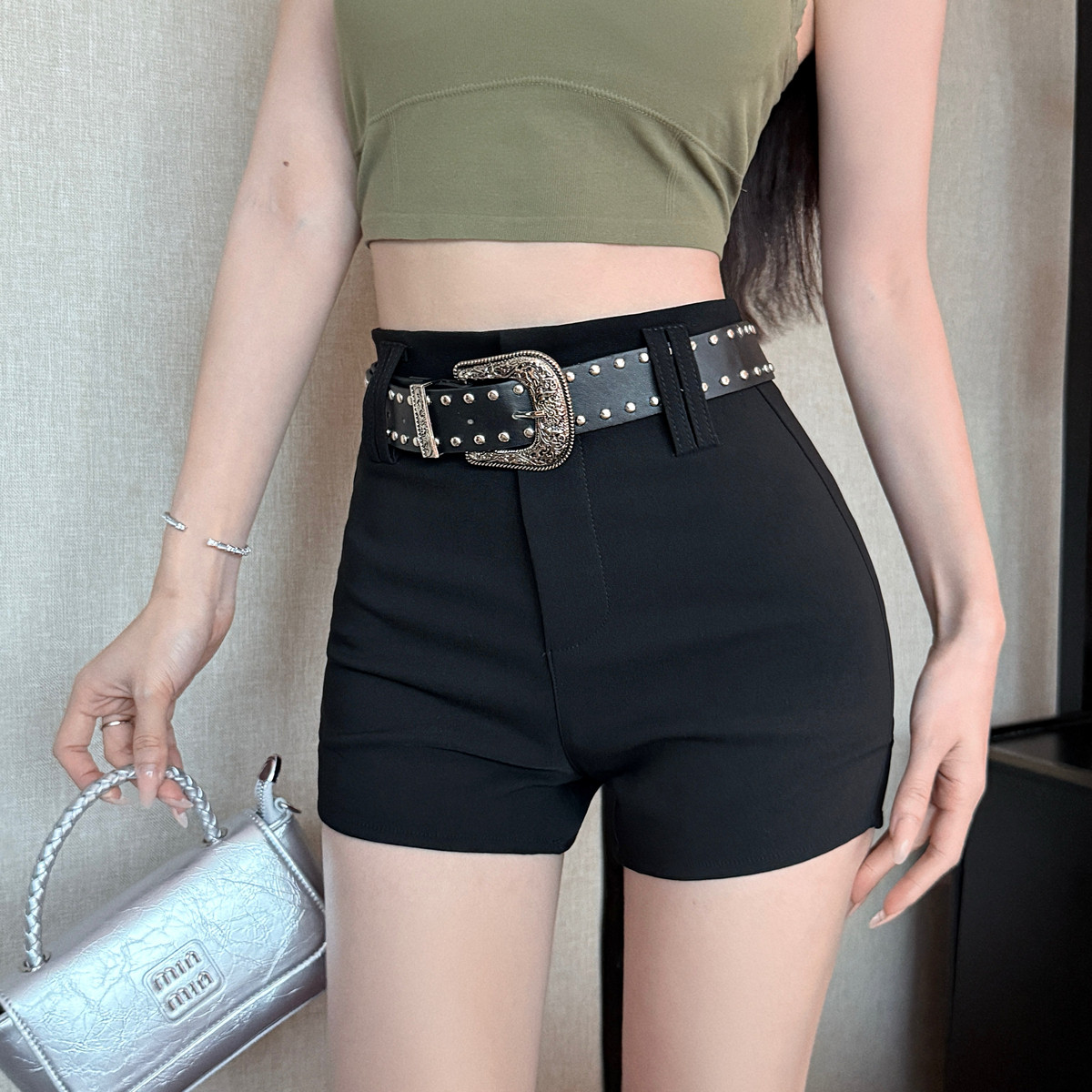 女外穿弹力紧身显瘦休闲超短热裤 美式 辣妹带腰带黑色高腰辣妹短裤