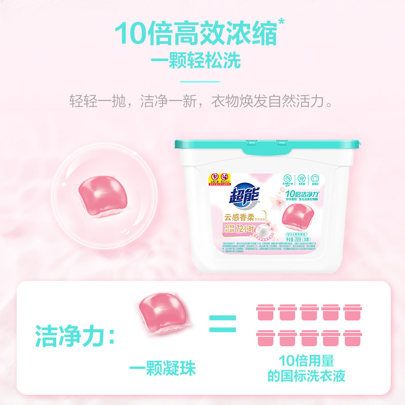 超能云感香柔凝珠288g 3盒蚕丝蛋白精华洗护合一十倍洁净108颗