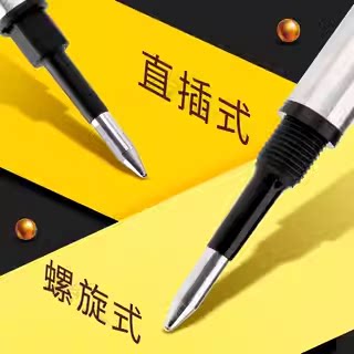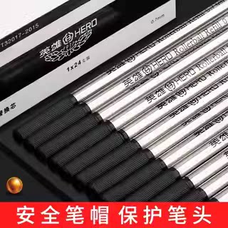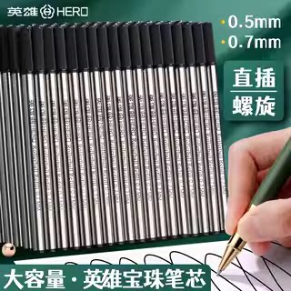 英雄笔芯宝珠笔金属黑色签字笔水笔替换笔芯0.5mm 0.7mm螺纹头直插头子弹头速干宝珠笔圆珠签字笔中性笔直液