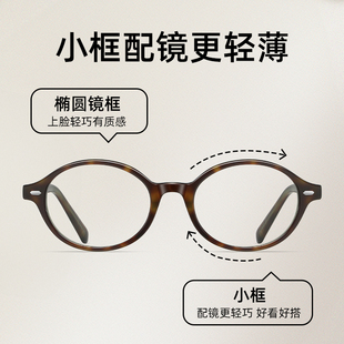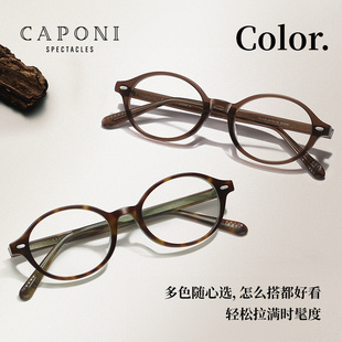 CAPONI椭圆小框书呆子眼镜女玳瑁镜框防蓝光素颜可配近视蔡司镜片