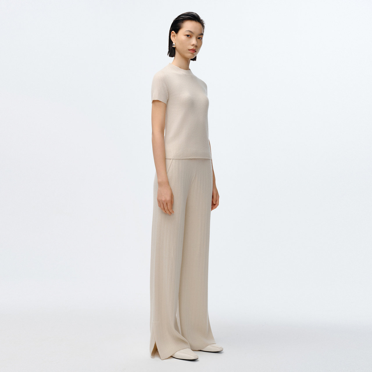 春针织米色阔腿简约羊绒羊毛休闲裤 IMM尹默女装 电商专款