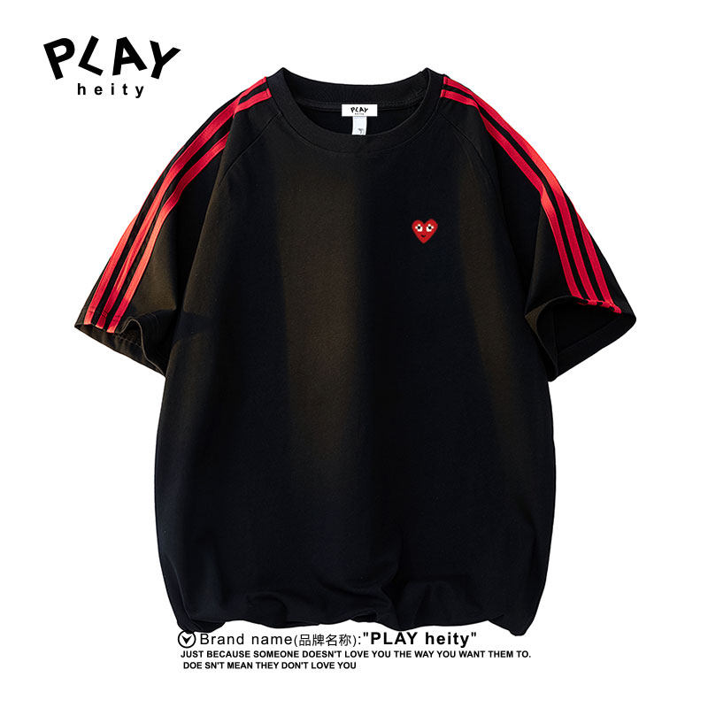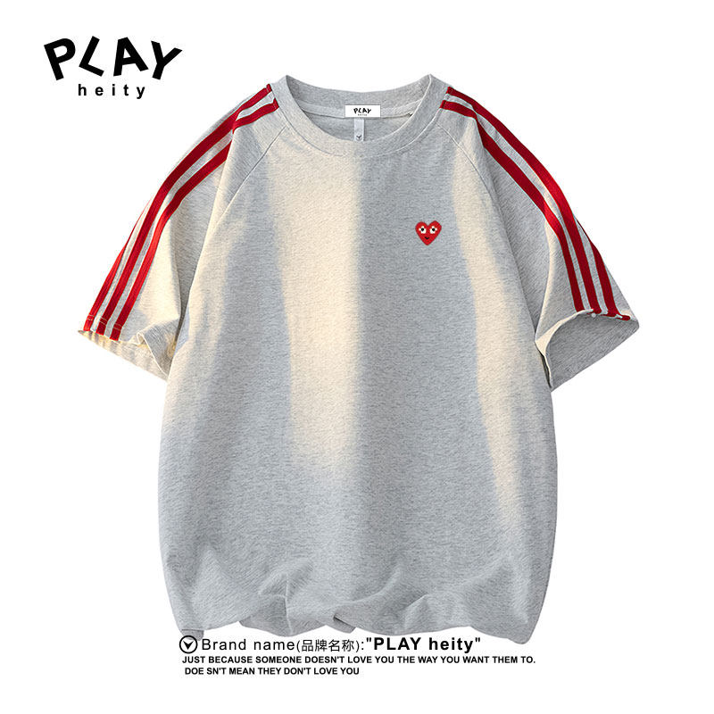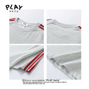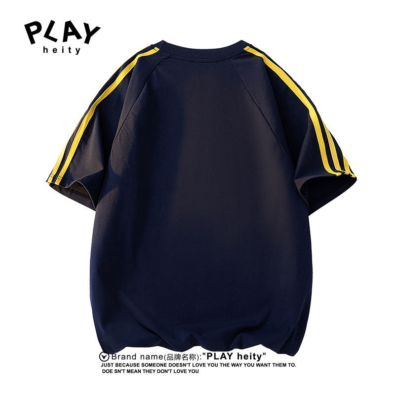 HEITY 美式 官方短袖 新款 复古三条杠男女宽松休闲上衣 T恤夏季 PLAY