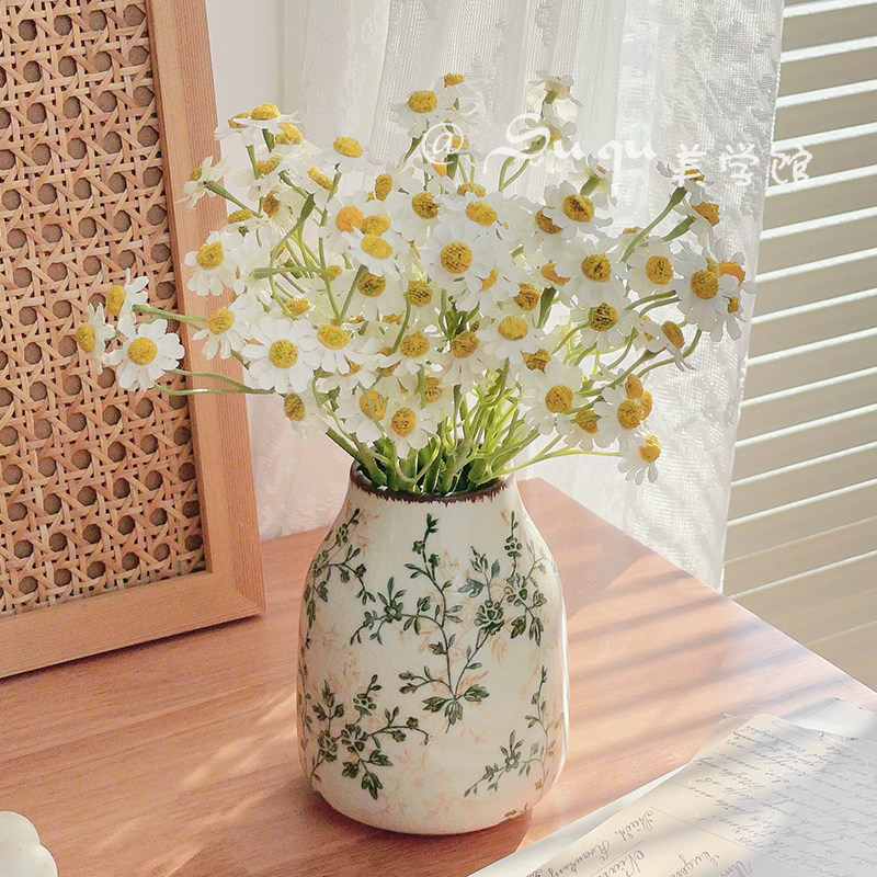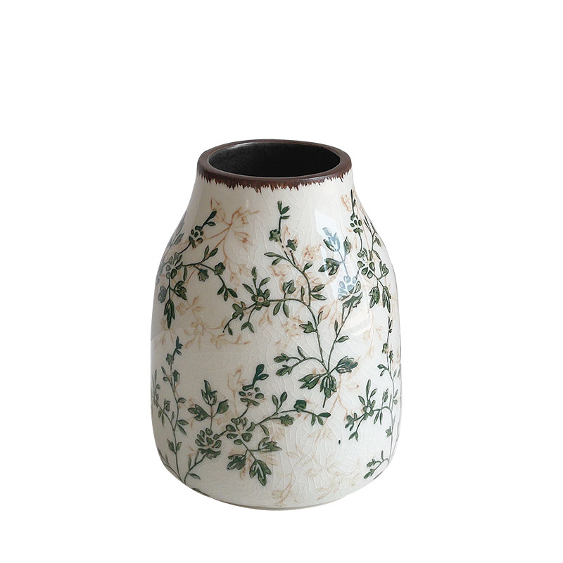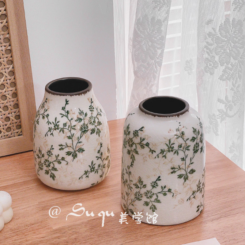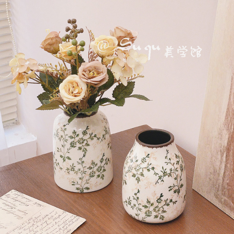 复古仿古陶瓷小花瓶摆件客厅插花干花小众高级感创意装 饰品田园风