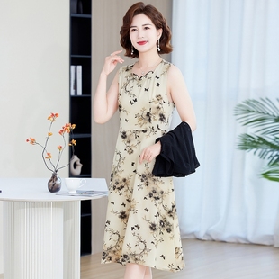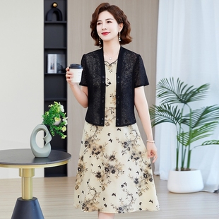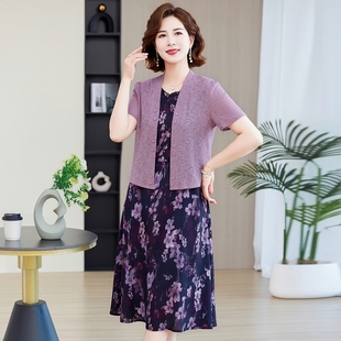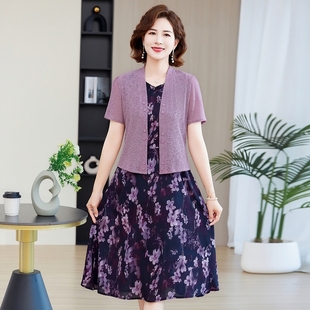 中老年人洋气质显瘦碎花两件套裙子女 连衣裙2025新款 妈妈夏装 时尚
