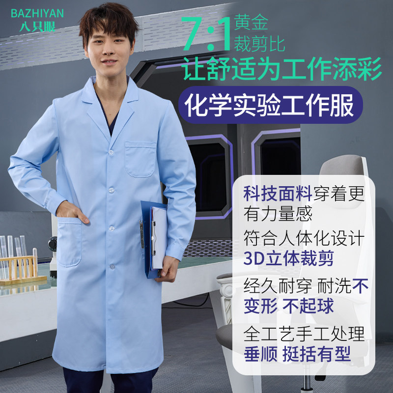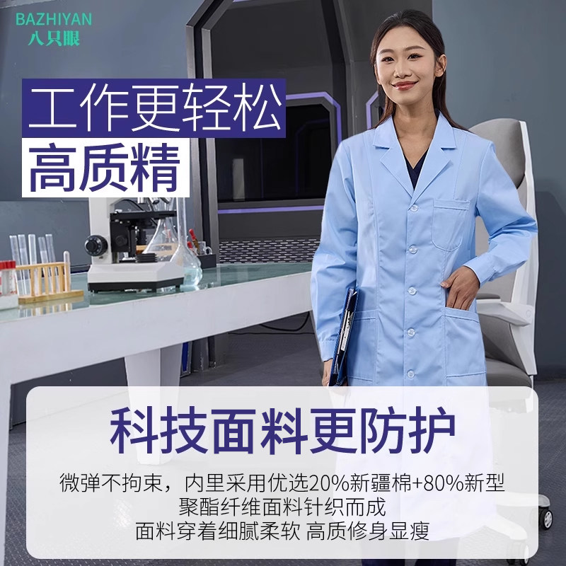 化学研究生防护服隔离衣 短袖 实验室专用实验服长袖 医生蓝大褂女款