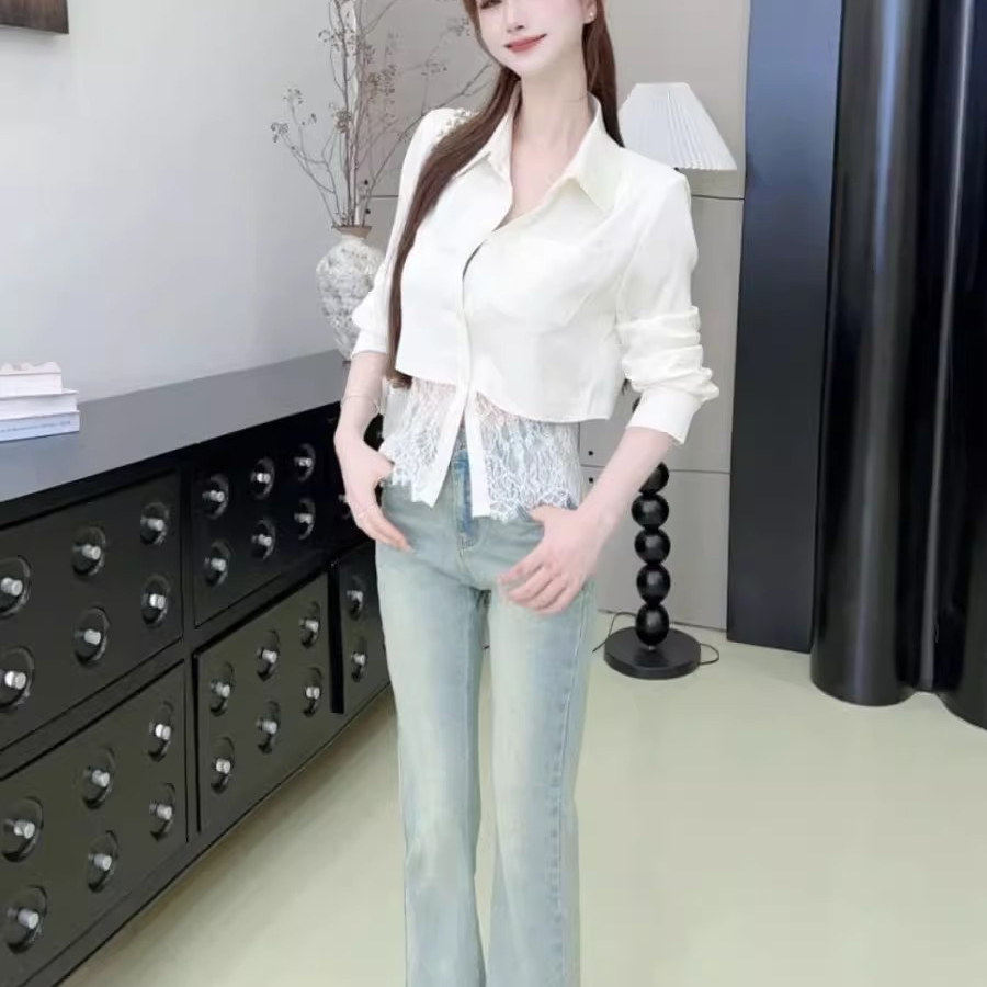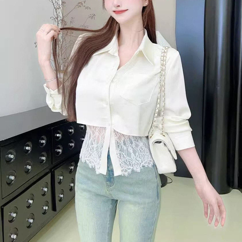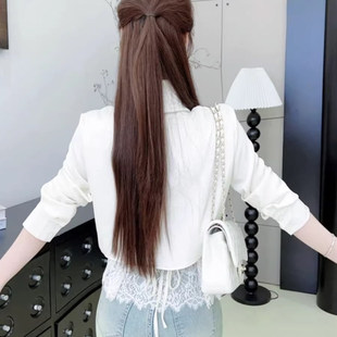 设计感小众独特别致超好看衬衣 上衣女初春季 法式 白色蕾丝拼接衬衫