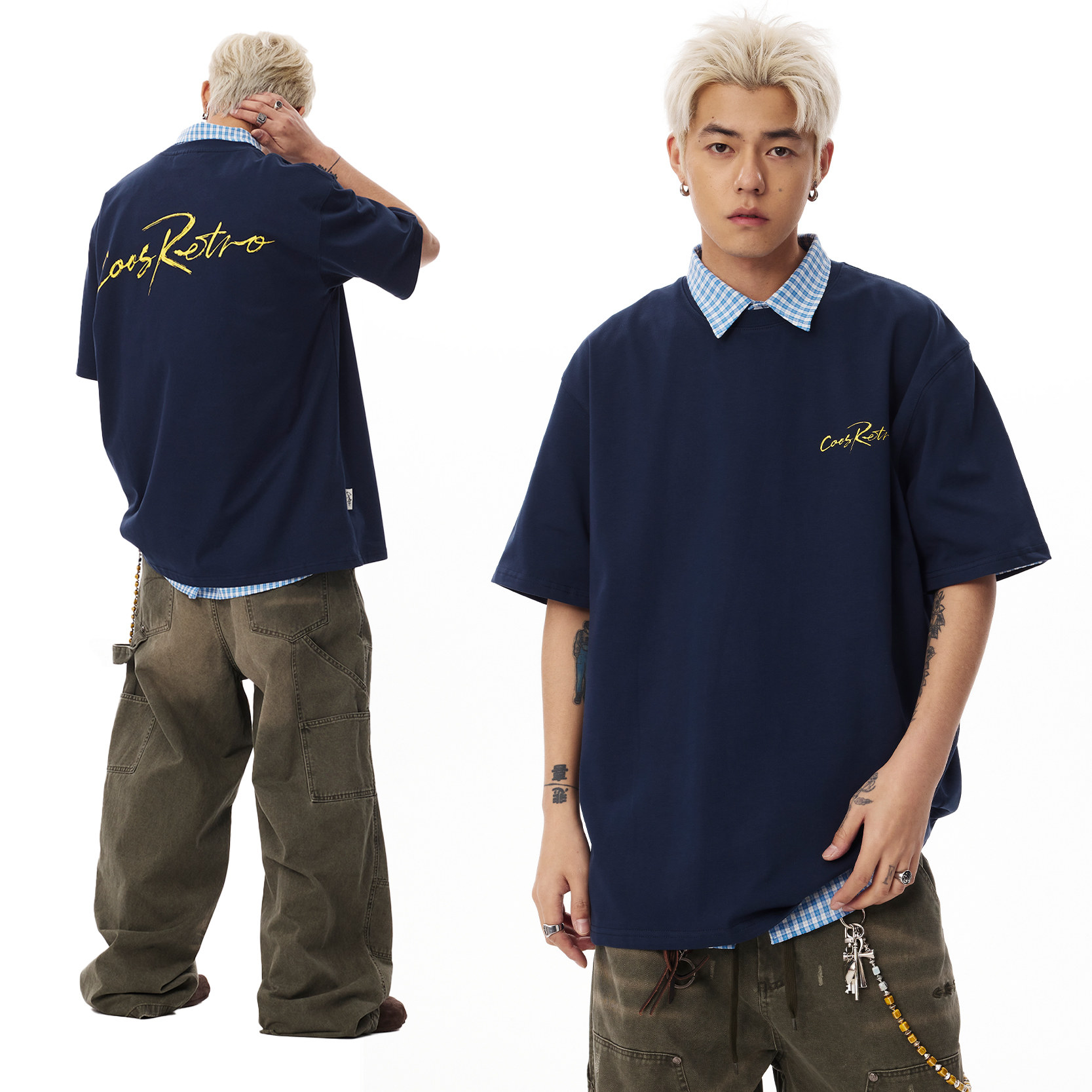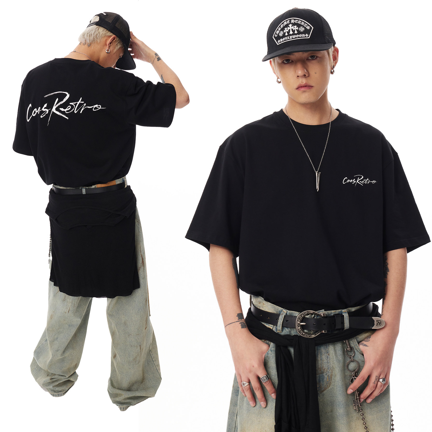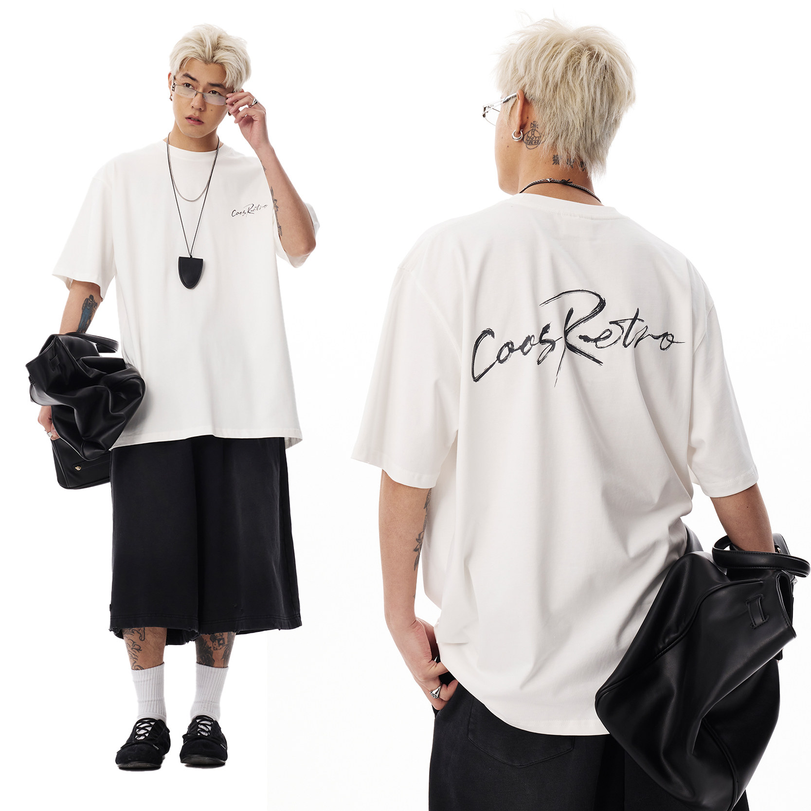 CoosRetro美式 夏男女百搭T恤 复古手绘水墨蛇年撞色印花宽松短袖