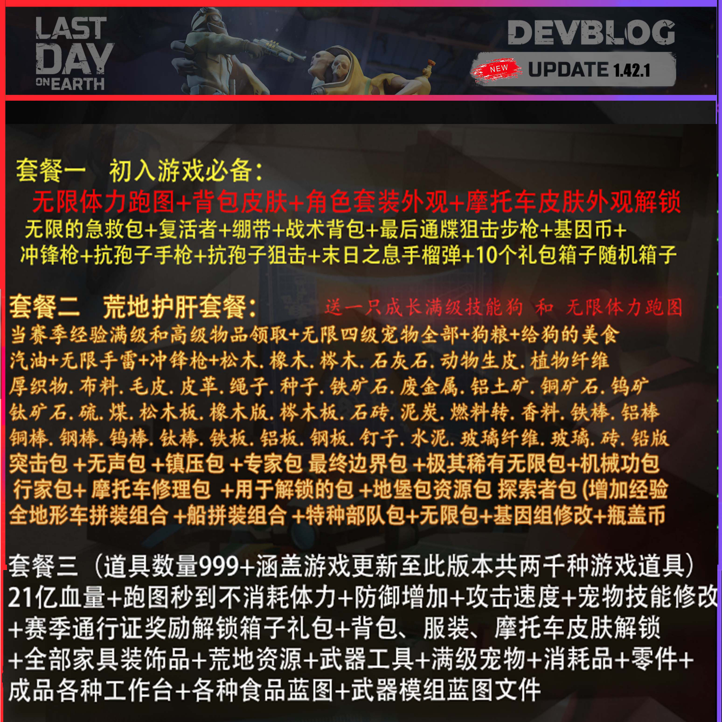 备礼包 皮肤装 宠物家具蓝图 代刷材料物资 地球末日生存角色定制