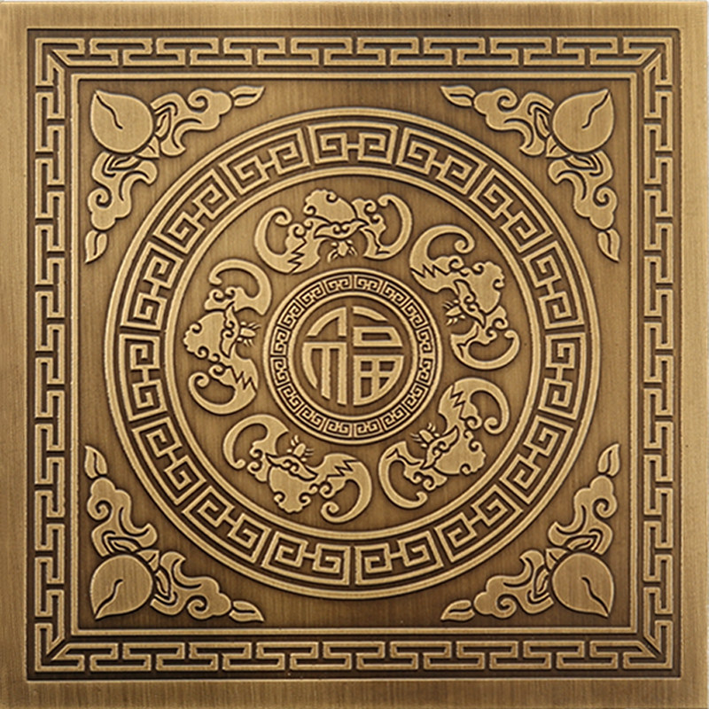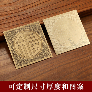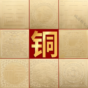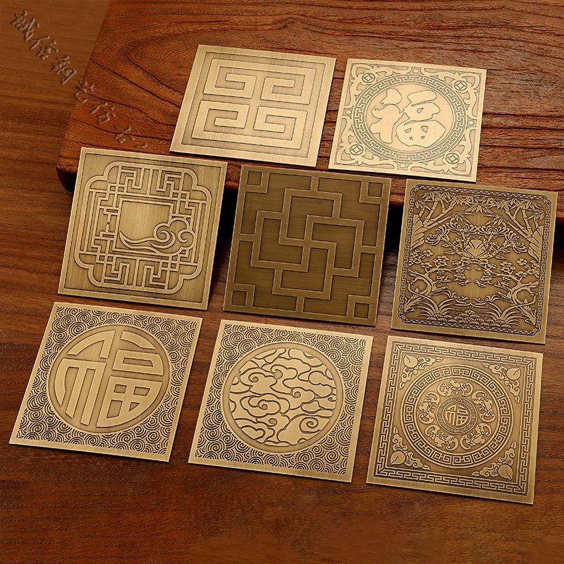 仿古纯铜方形雕刻花装 背景墙衣橱柜门家具桌面全黄铜贴片 饰片中式