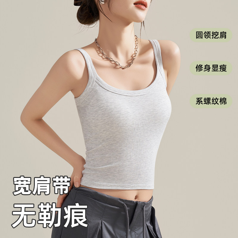 针织吊带背心女内搭带胸垫2025新款 上衣 白色美背文胸一体打底无袖