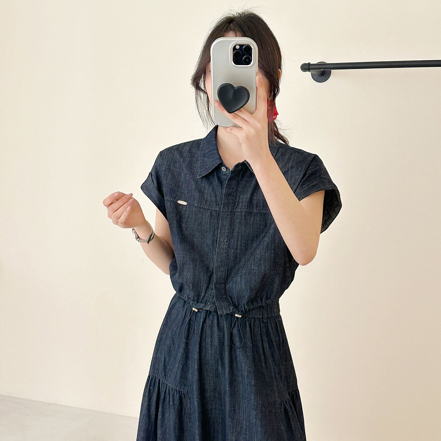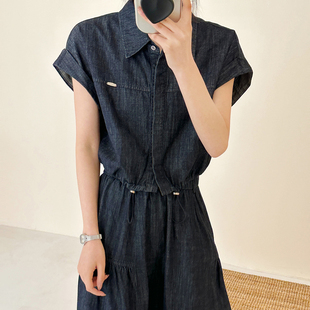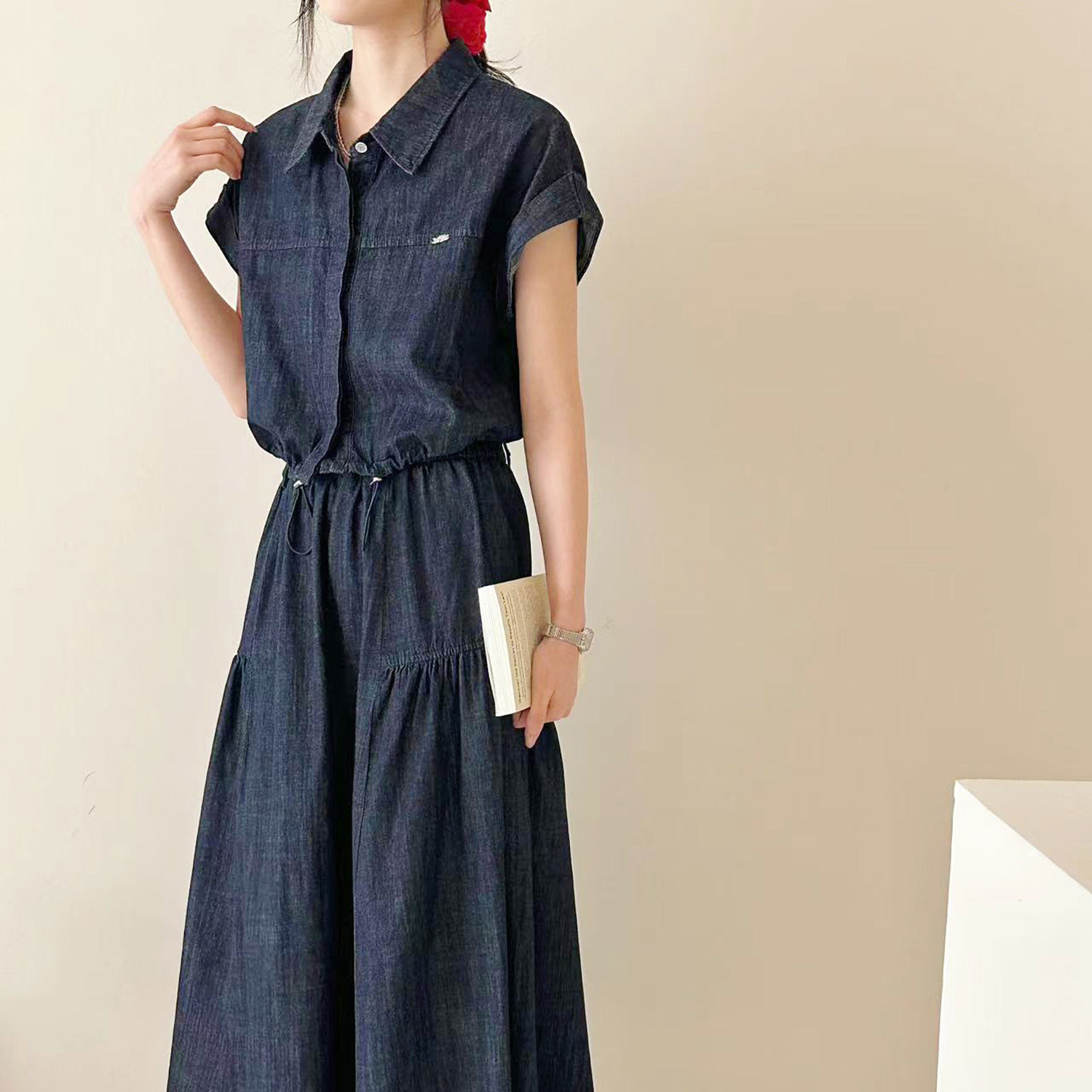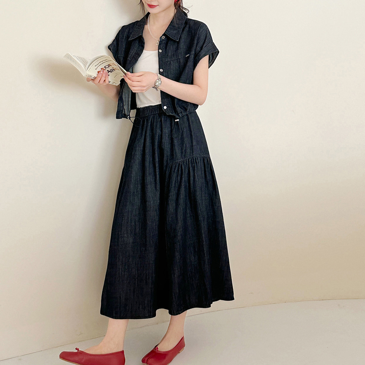 松紧半身裙女两件套装 25夏秋牛仔短衬衫 显瘦 丹宁风情 糖安妮