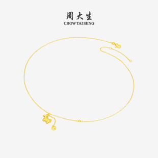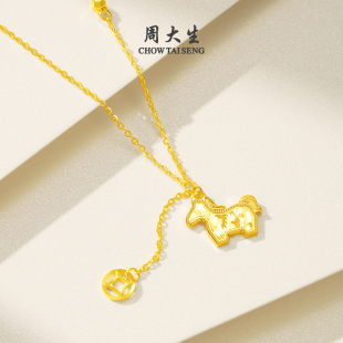 周大生黄金项链女足金碎碎冰铜钱马年生肖本命年套链马上有钱吊坠