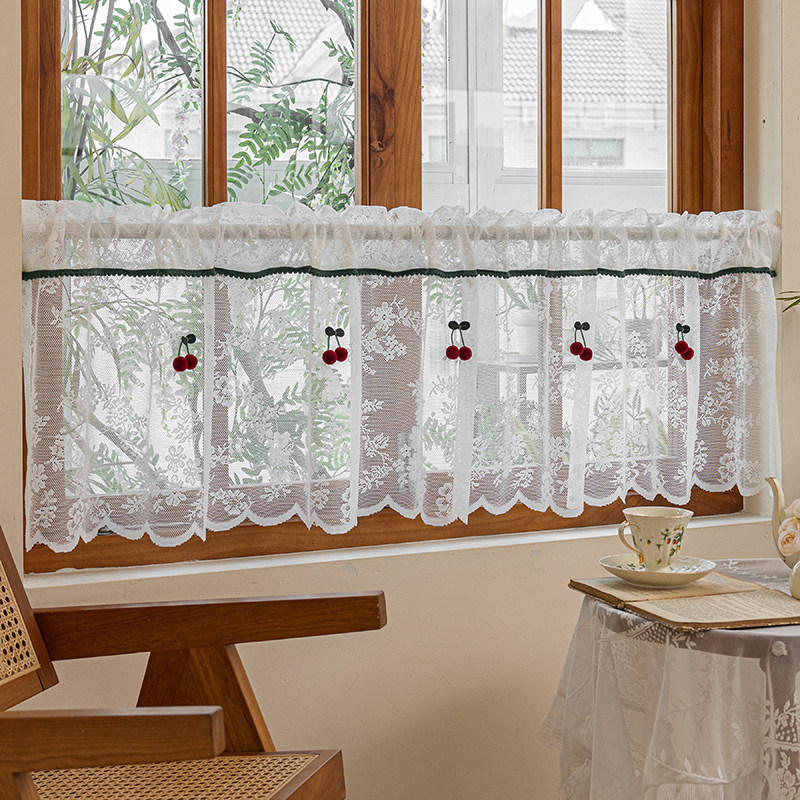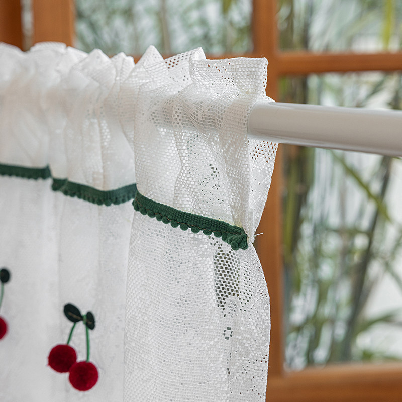 蕾丝纱帘樱桃公主小帘魔术贴窗帘免打孔安装 纱帘透光阳台纱窗纱