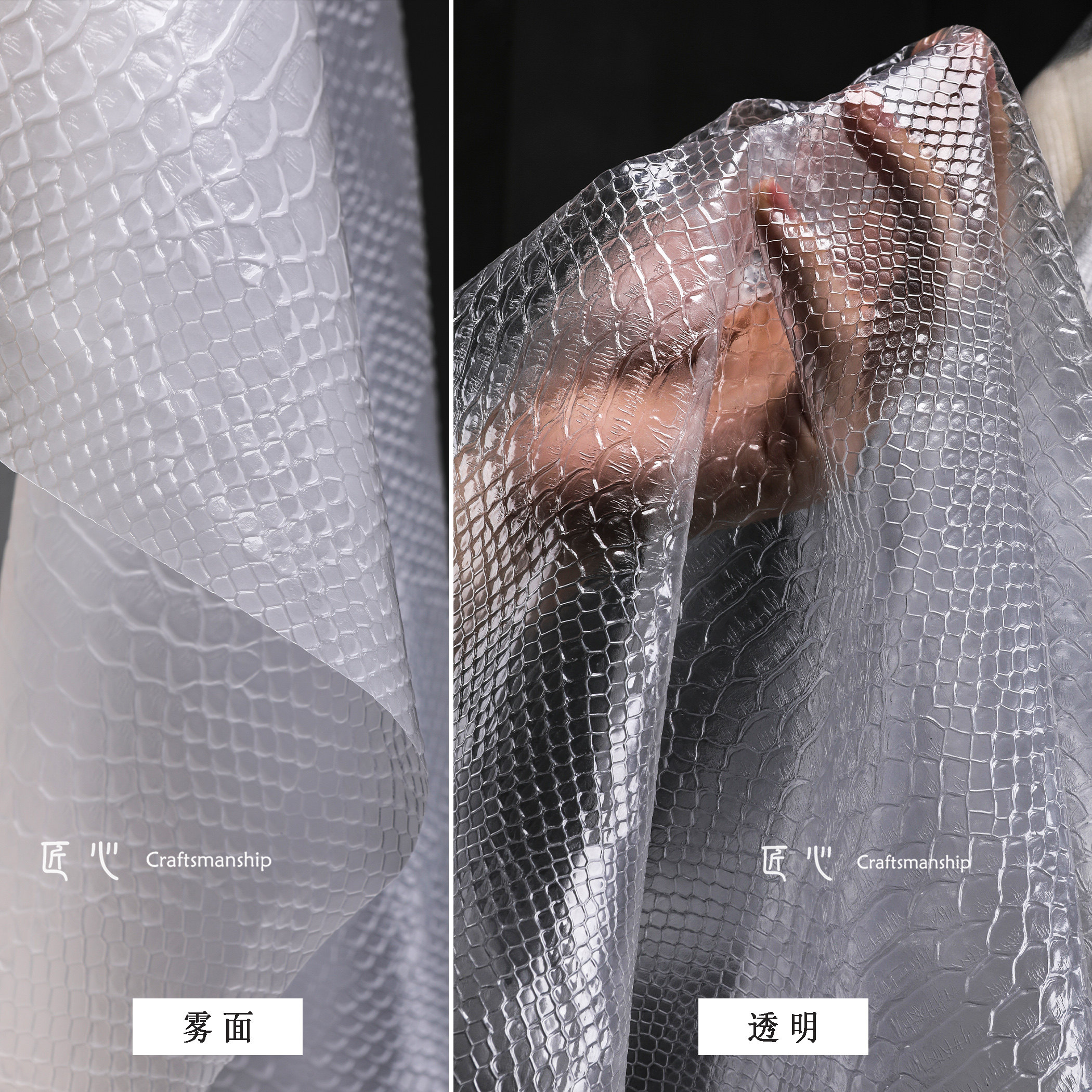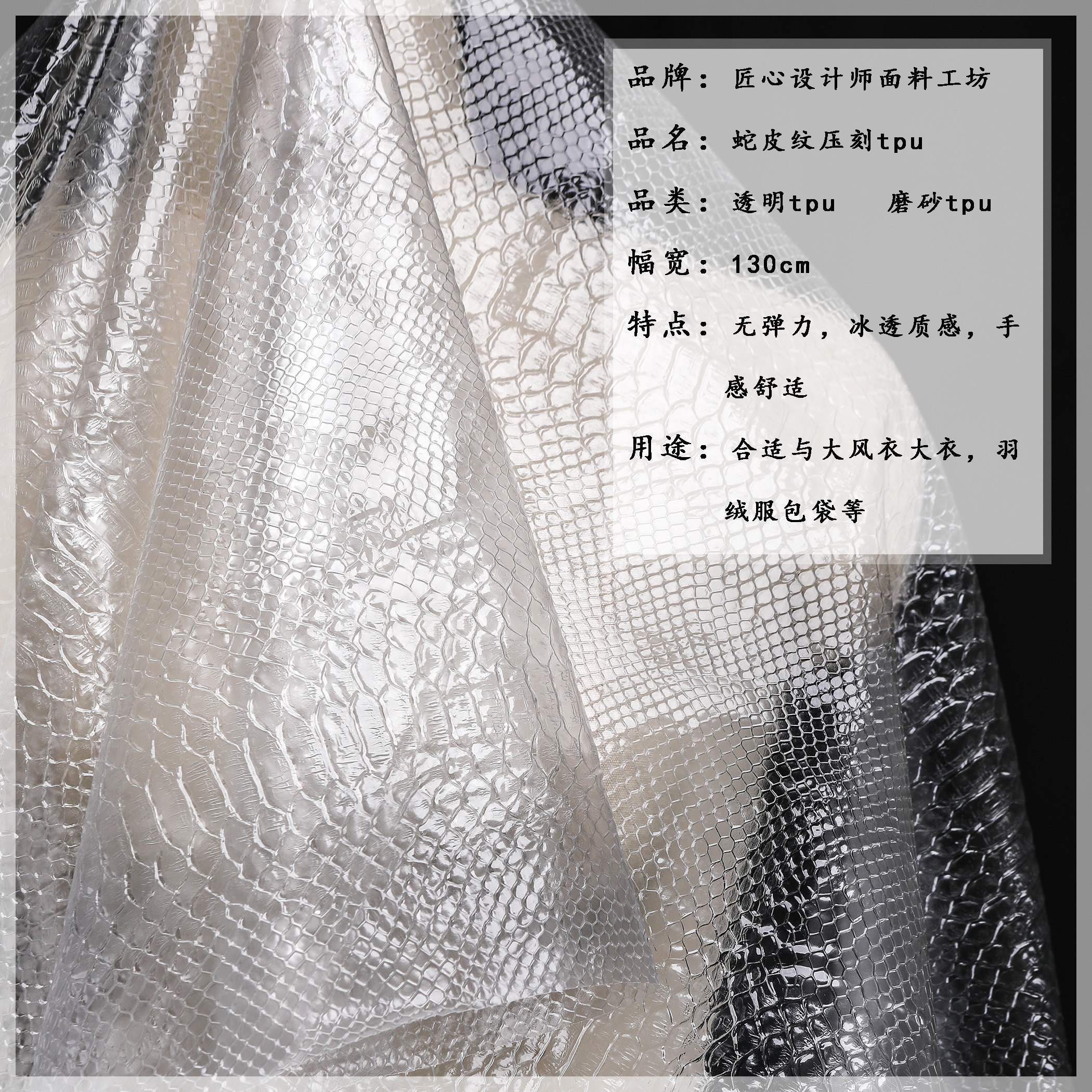 裙子服装 创意pvc服饰打底衬衫 设计师面料 磨砂tpu防水布 蛇皮透明