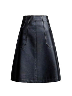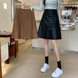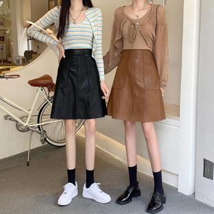 秋冬大码 胖mm设计感a字半身裙显瘦遮胯伞中裙 高腰PU小皮裙中长款