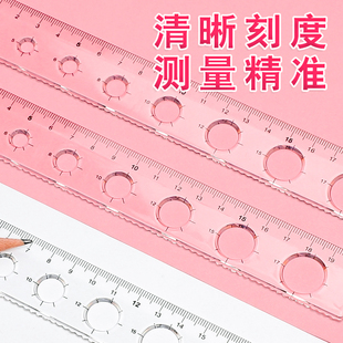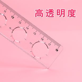 简约波浪直尺 透明塑料洞洞尺学生用考研尺测量绘图多功能刻度尺15cm18cm20cm初中几何图形画圆格尺考试套装