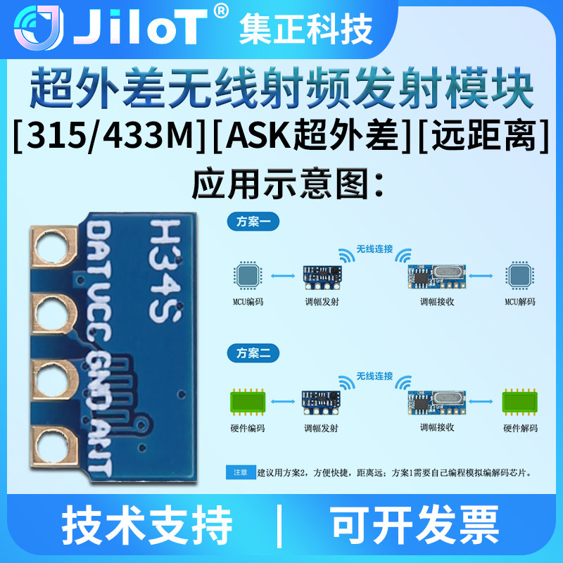 集正H34S无线ASK遥控发射模块RF射频小体积远距离315 433M宽电压