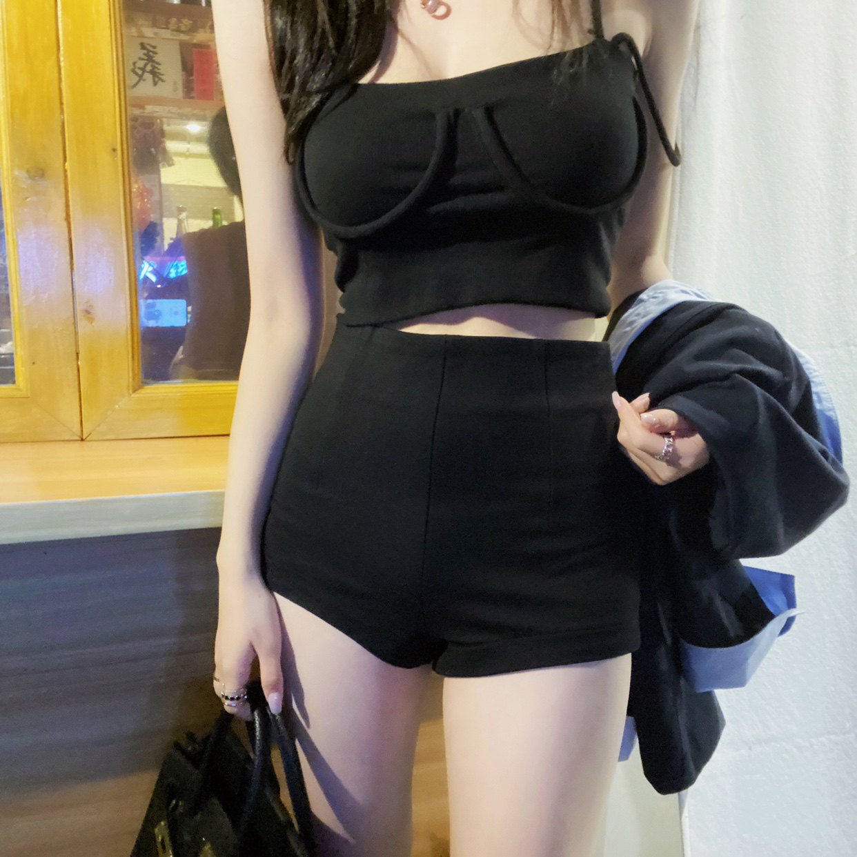 裤 女黑白两色百搭收腹西装 紧身打底裤 Eva君君酱高腰显瘦外穿短裤