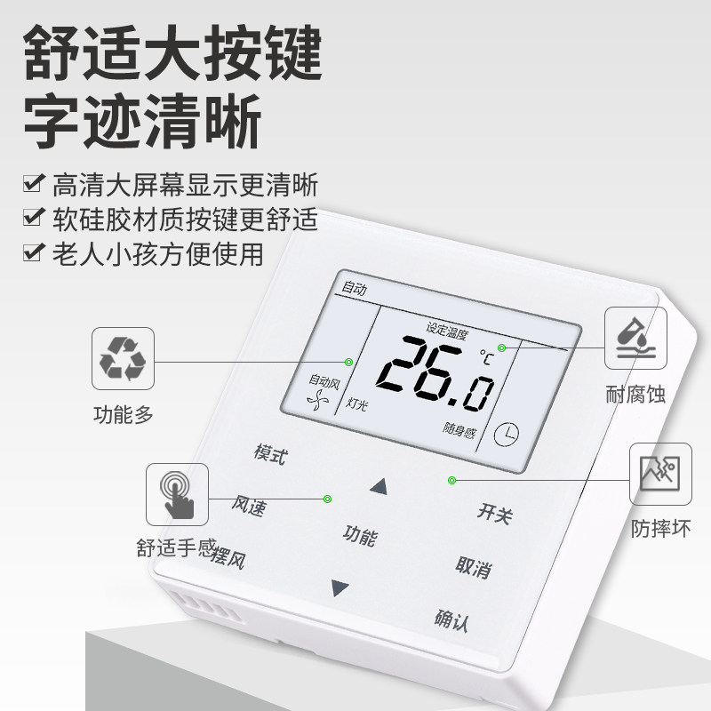 5芯线wifi风管机多联机空调控制面板 憬呈适用于美 90W 7档风速 线控器KJR