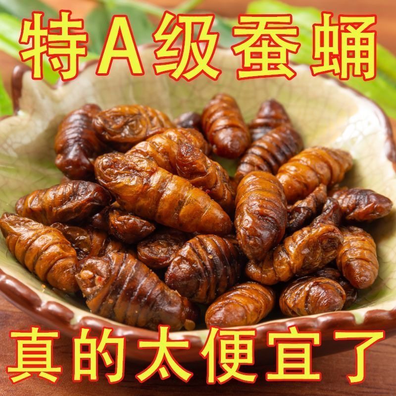 香酥蚕蛹山东特产即食香辣五香蚕蛹新鲜蚕蛹下酒菜 买5袋送5袋