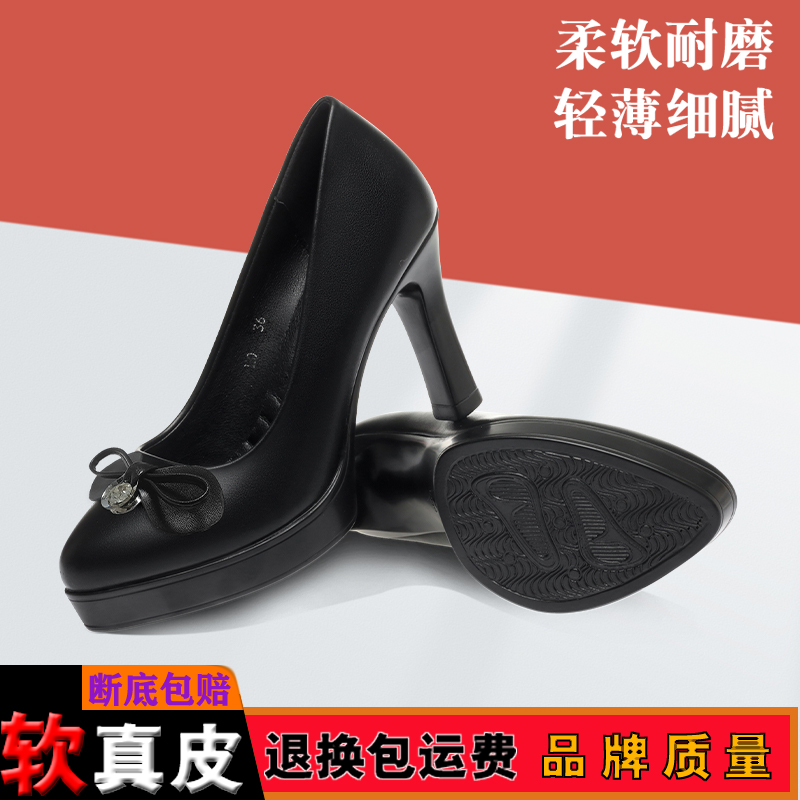 黑色软底舒适气质高跟鞋 星期六粗跟单鞋 浅口通勤皮鞋 新款 2025秋季