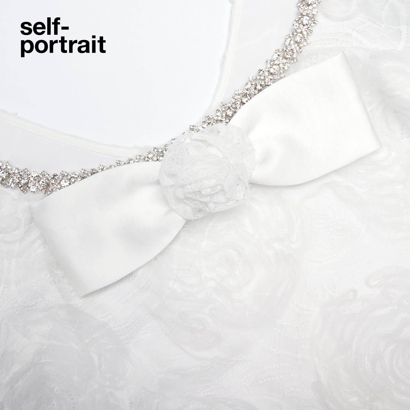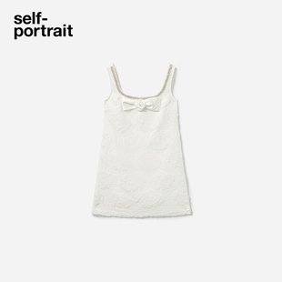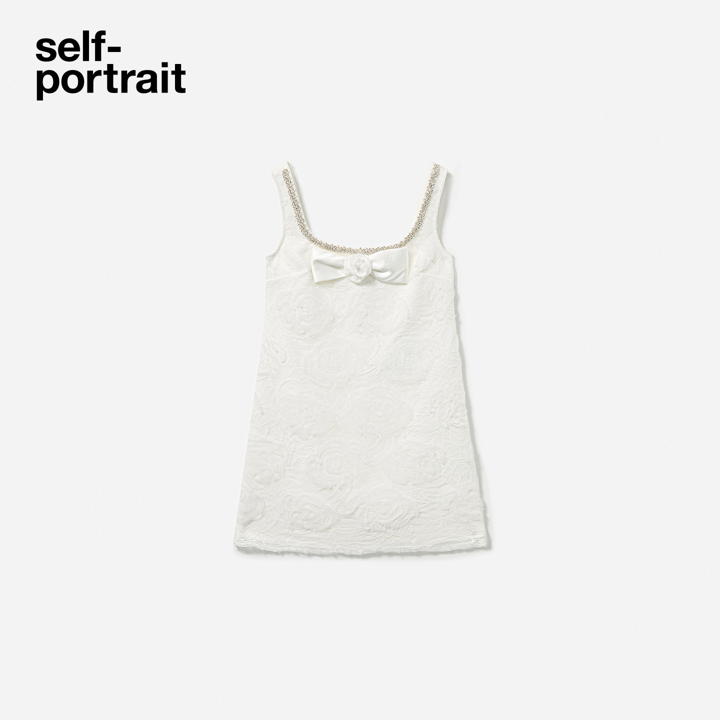 纯净白钻饰蝴蝶结薄纱蕾丝连衣裙短裙 2025早秋新款 self portrait