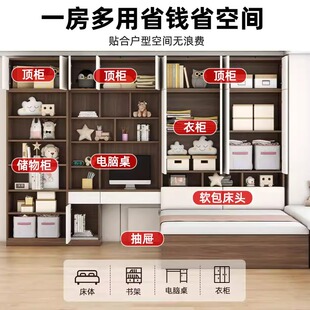 榻榻米衣柜床一体侧柜床小户型家用实木儿童床带书桌多功能组合床