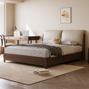 慕思旗舰店全实木床黑胡桃木储物床真皮床原木风卧室大床双人床