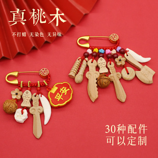 宝宝新生婴儿别针龙蛇孕妇平安护身符儿童外出安全真桃木挂件