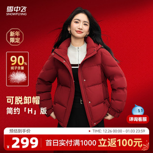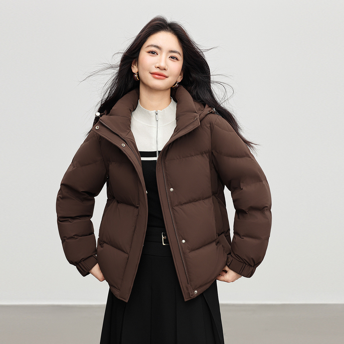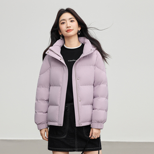 雪中飞2025冬新款 保暖羽绒服纯色面包服简约休闲百搭 女士短款