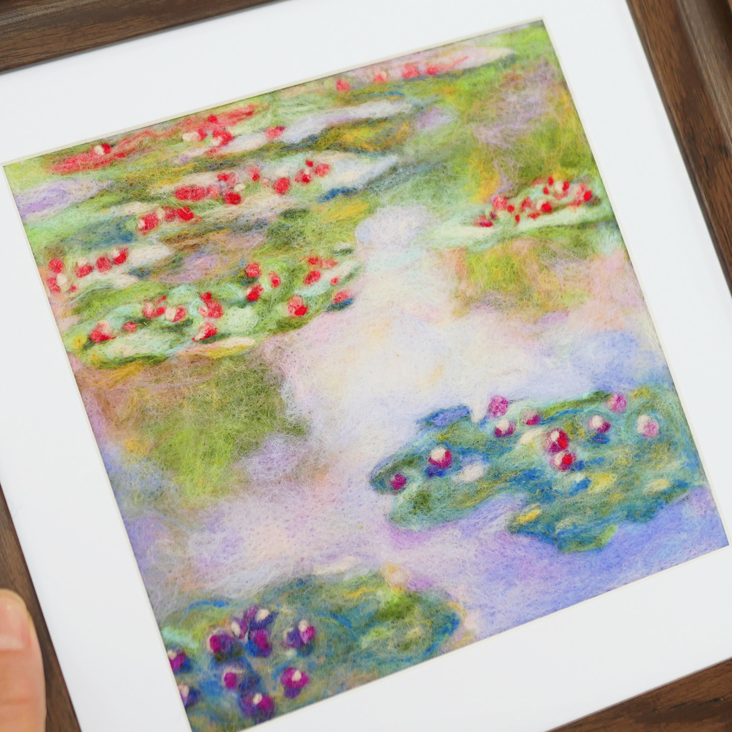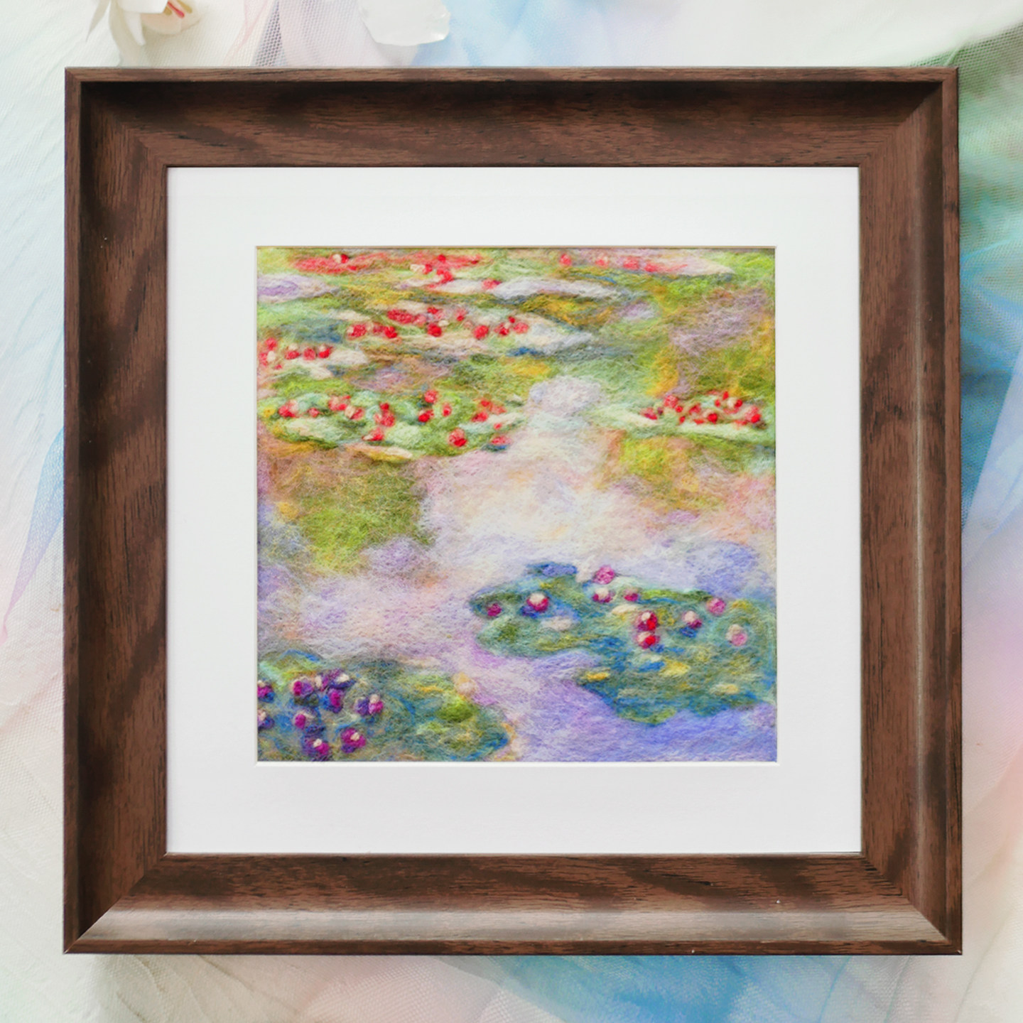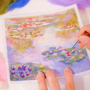 数绵羊羊毛毡戳戳乐diy材料包 饰摆件送情侣礼物 莫奈睡莲相框画装