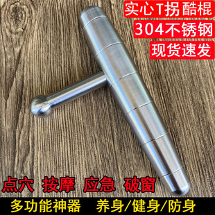 304不锈钢EDC酷棍短棒t型拐战术棍点穴撅健身防卫车载破窗锤 正品
