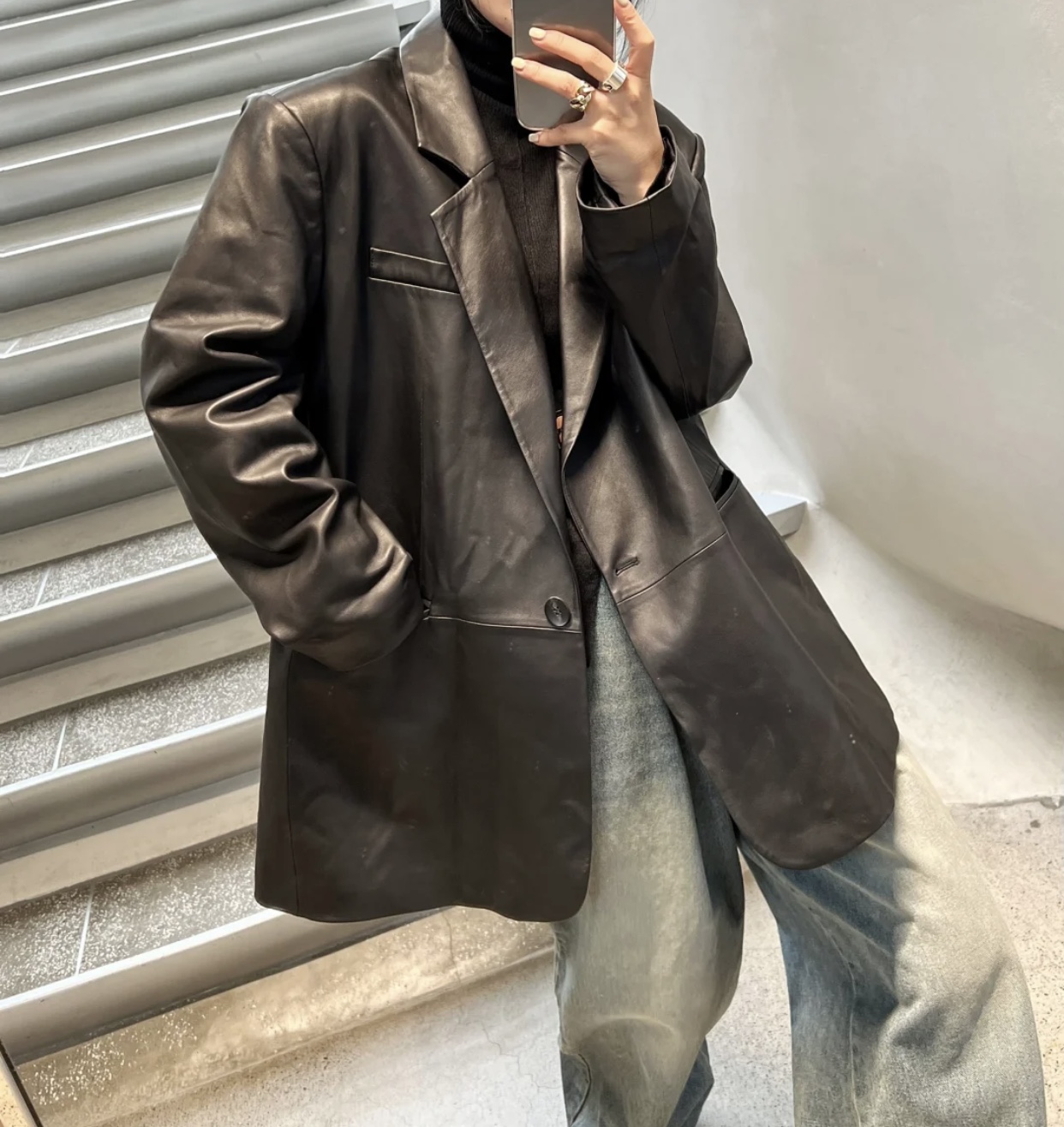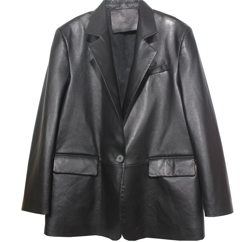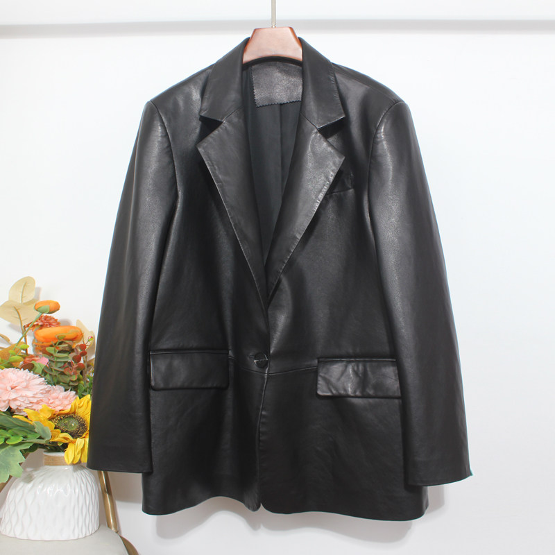 洋气尖领显瘦百搭上衣 皮衣外套新款 海宁短款 皮衣外套女2025春秋季