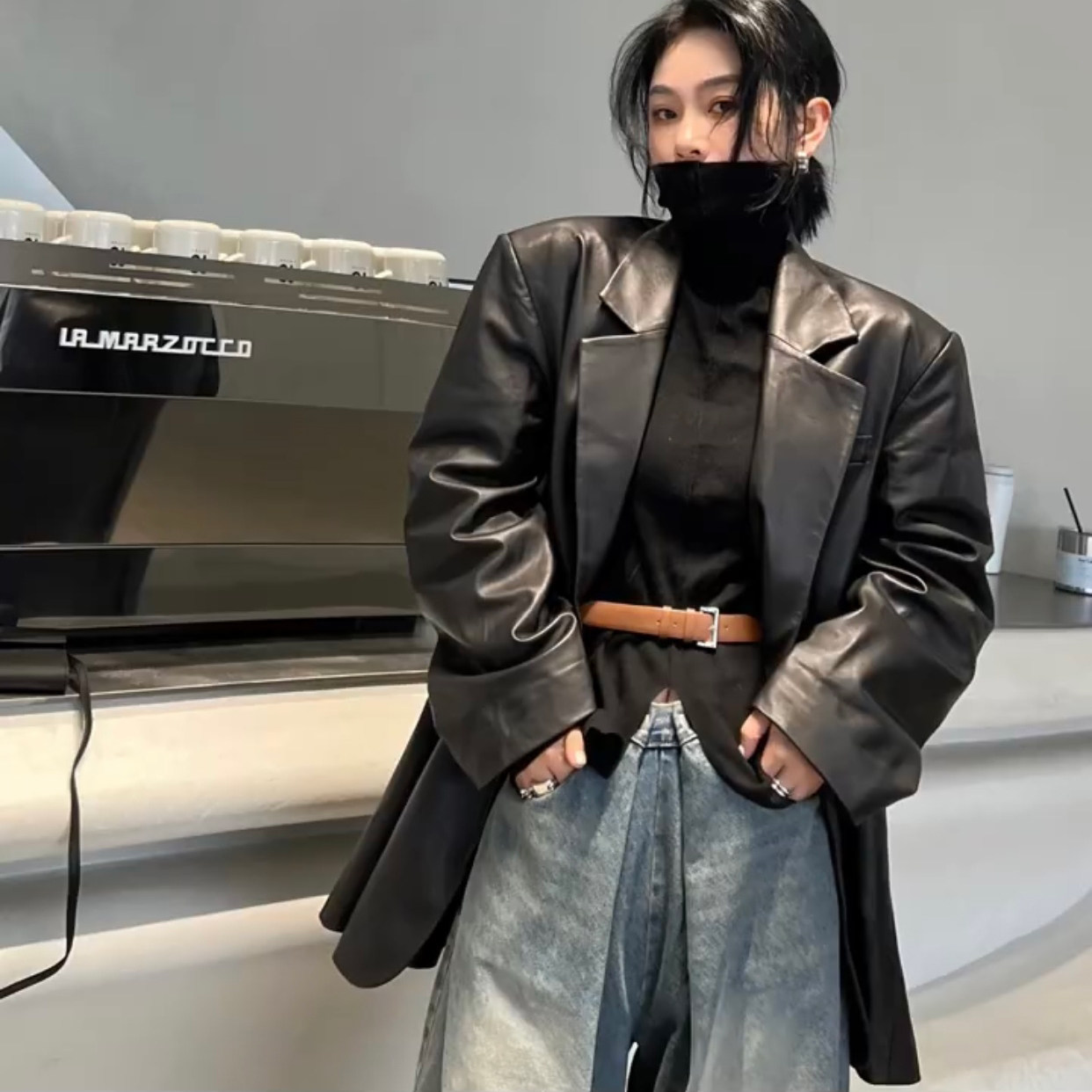 黑色美式 高级感气质宽松机车皮夹克皮衣 复古pu皮外套女春秋新款