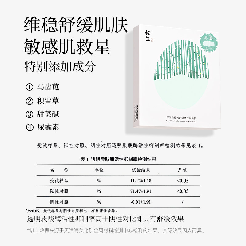 松生白桦树汁面膜敏感肌舒缓维稳修护保湿 5片装