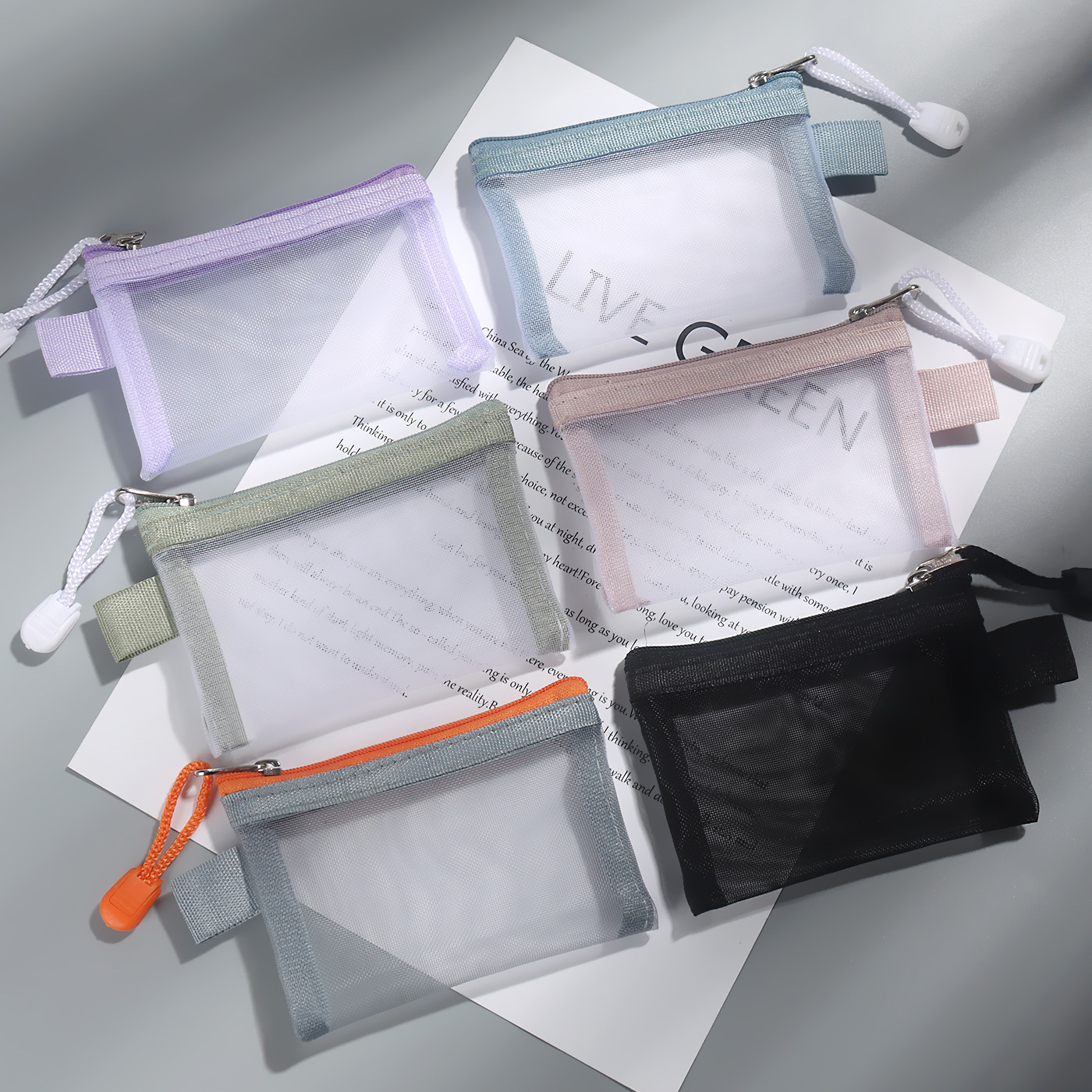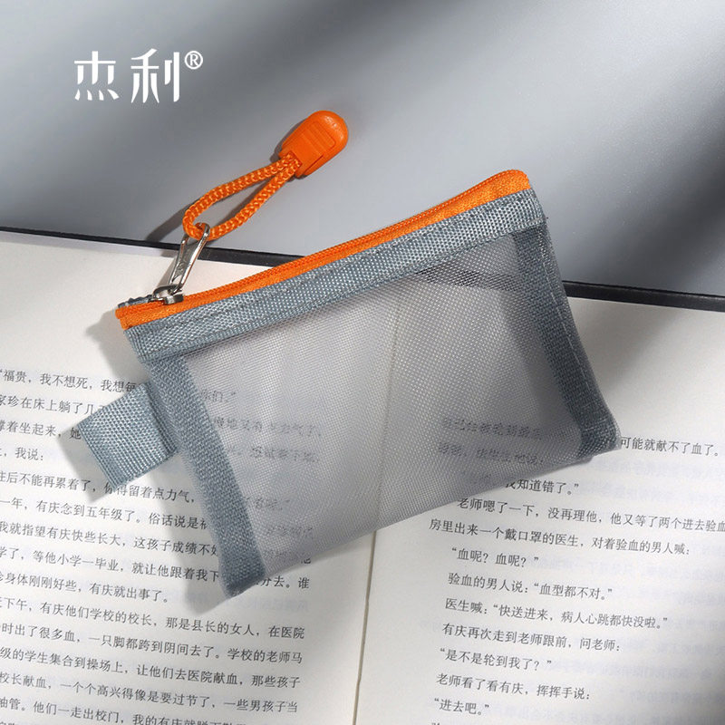 韩国简约笔袋女透明网纱网格考试铅笔袋男大容量文具袋收纳文件袋