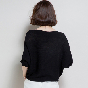 冰丝针织衫 薄款 中袖 t恤宽松短款 2025年一字肩上衣女装 蝙蝠衫 夏季