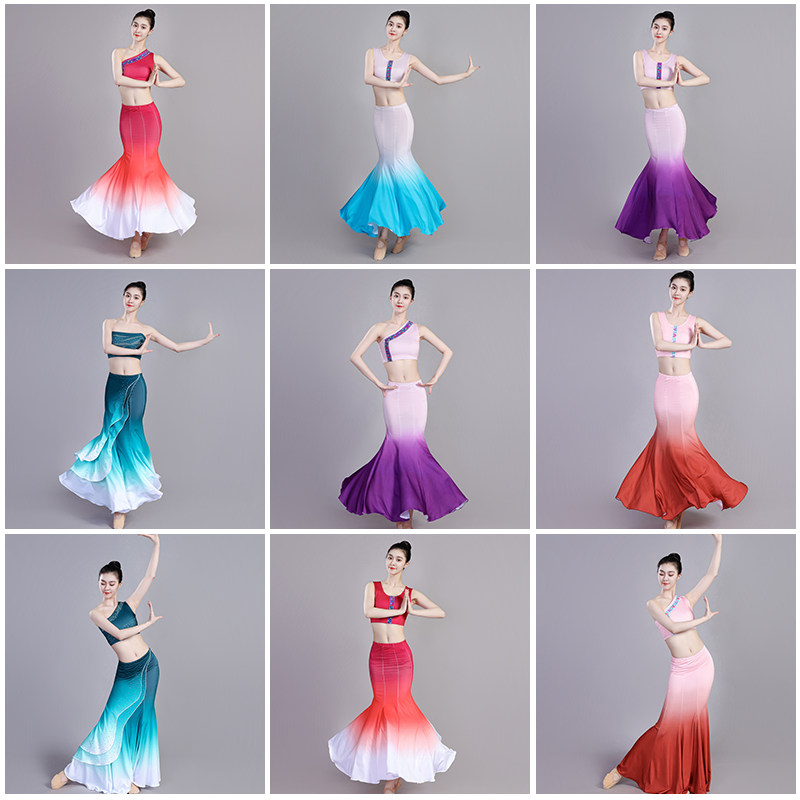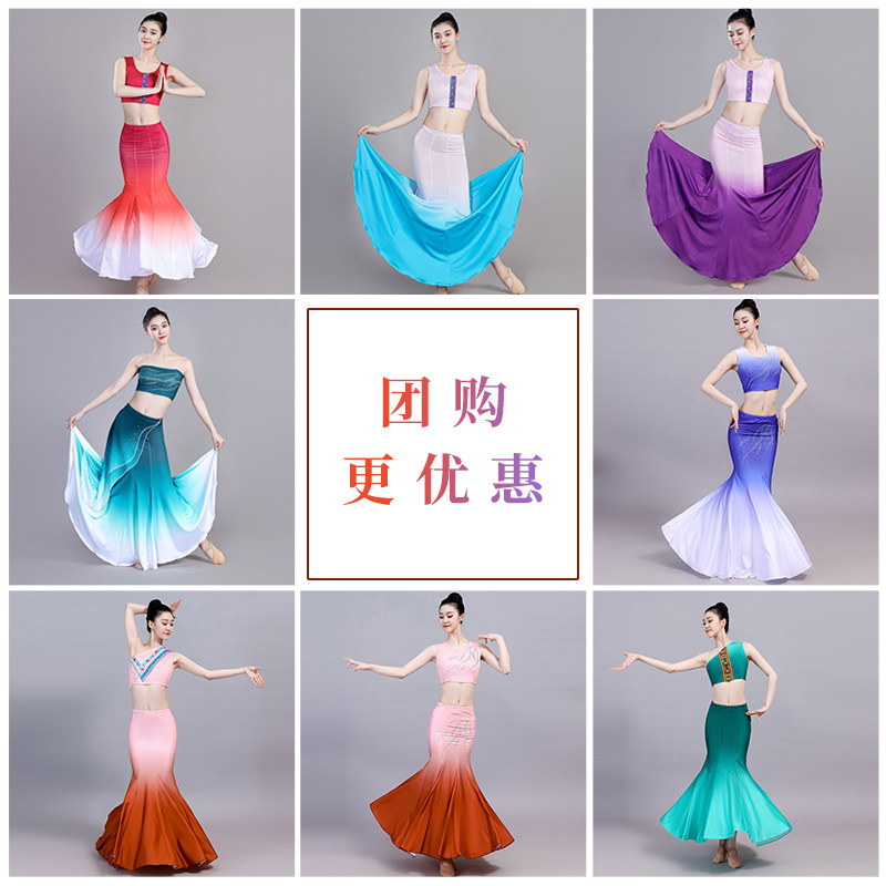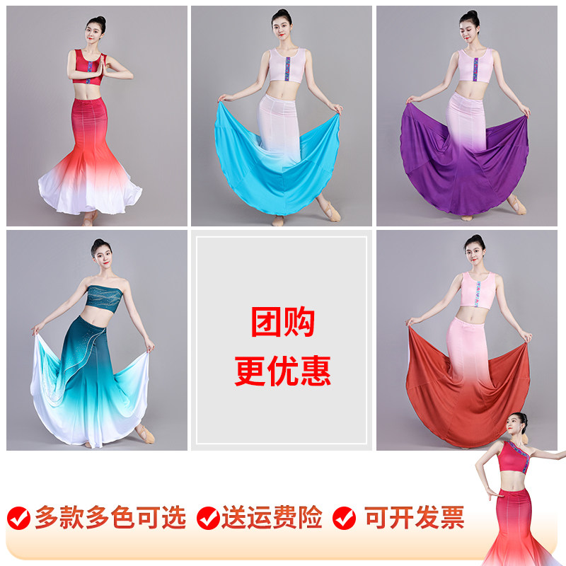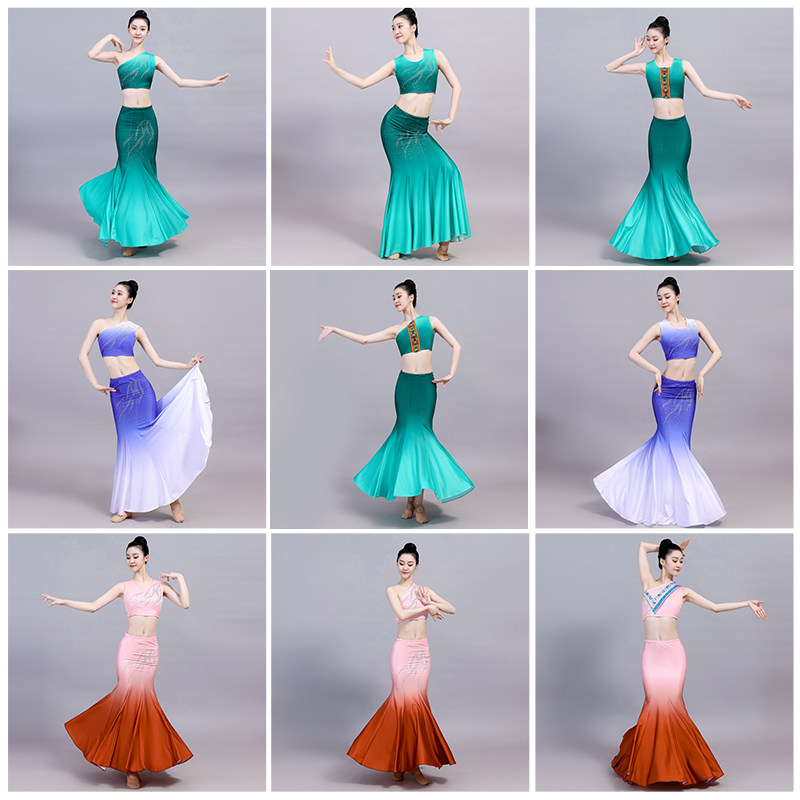 女舞裙孔雀舞艺考服装 练功裙表演服傣族服装 傣族舞蹈演出服装 新款