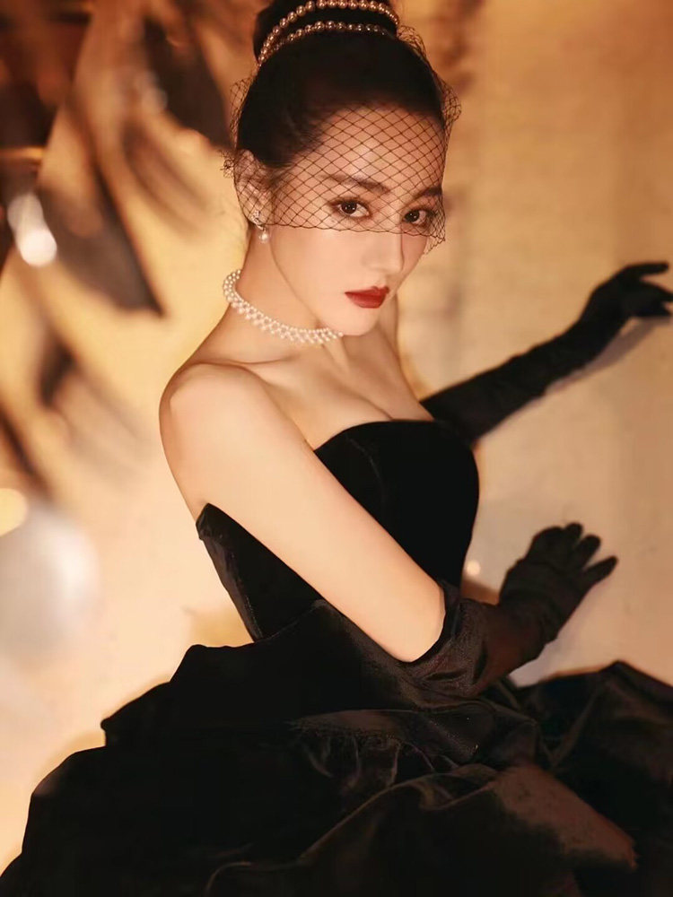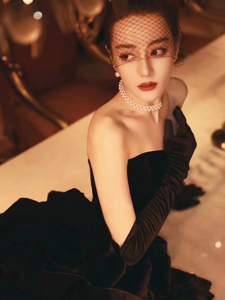 赫本风复古晚宴演出新娘拍照 手套女结婚礼服法式 热巴同款 丝绒长款