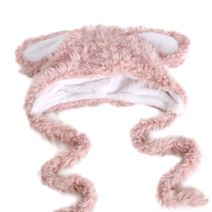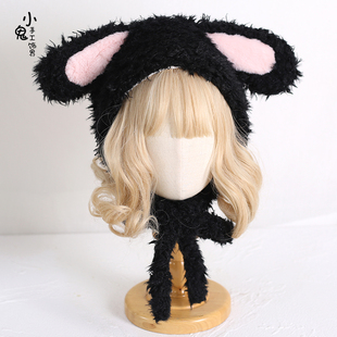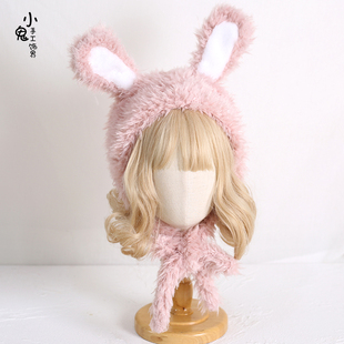 原创兔耳造型护耳帽可爱蕾丝雷锋帽洛丽塔兔耳朵百搭毛绒保暖帽