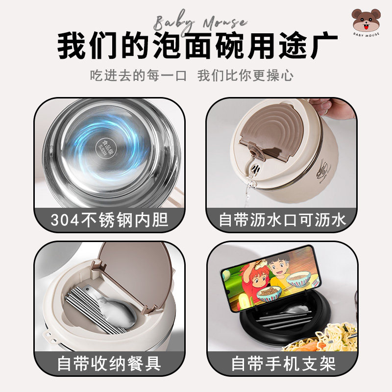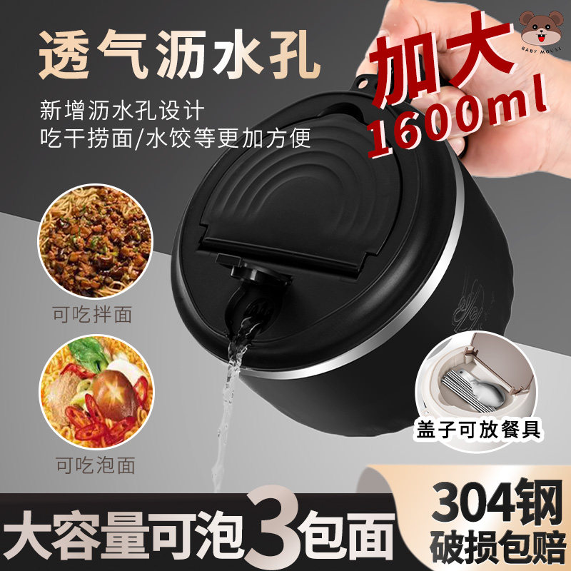304不锈钢泡面碗带盖大容量可滤水学生宿舍泡面神器上班食堂饭盒