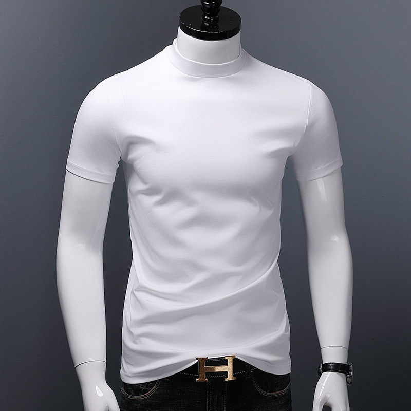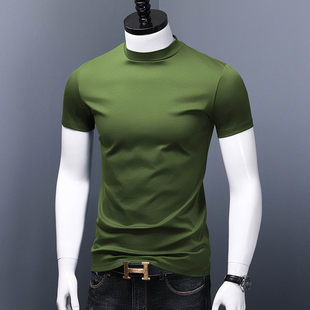 t打底衫 中领短袖 丝光棉体恤内搭纯棉半袖 半小高圆领修身 t恤男夏季