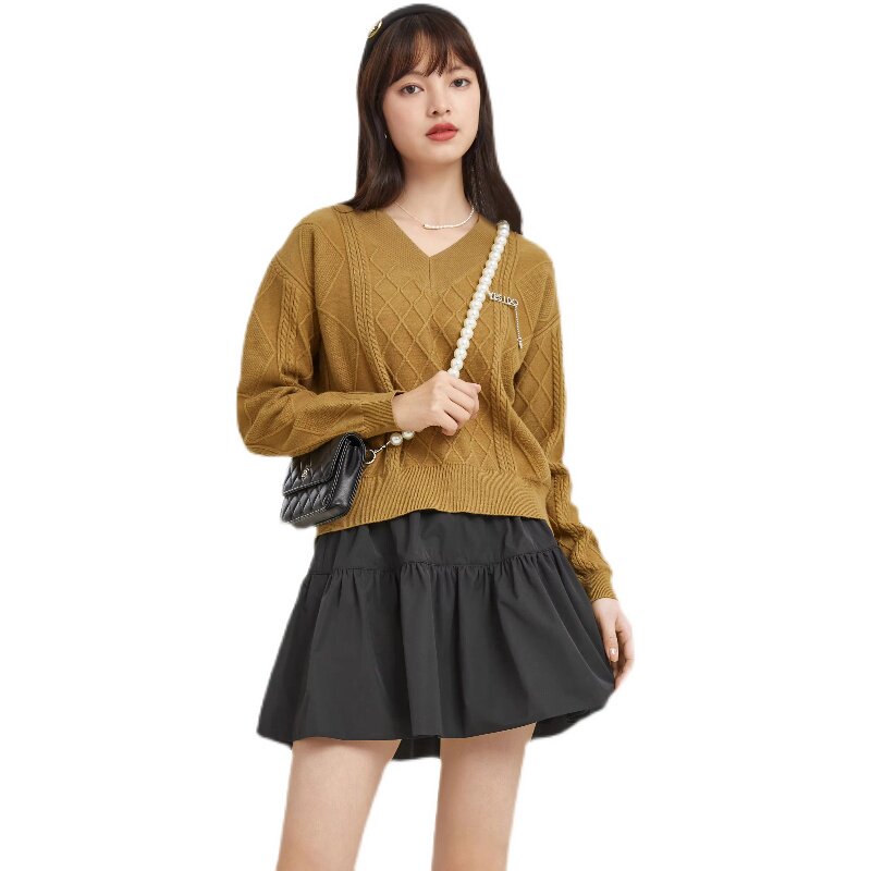 时尚 专柜正品 百搭套头针织上衣女37DQ526031 新款 朵以2022秋装