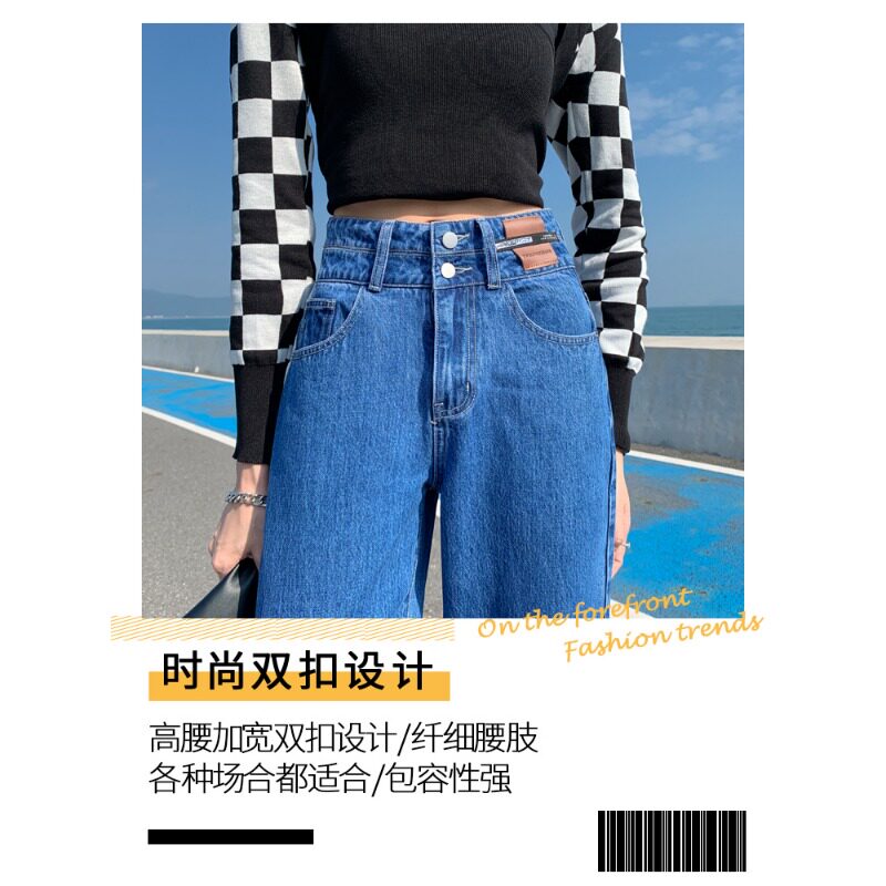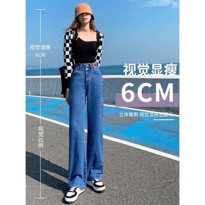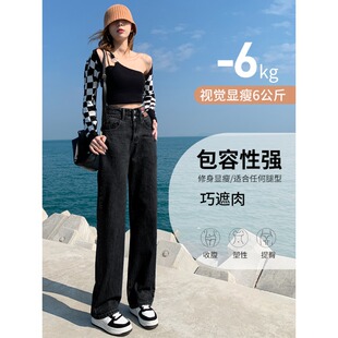 子 垂感直筒拖地裤 高腰阔腿软牛仔裤 女宽松春夏显瘦小个子2023新款