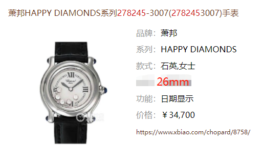 3007后镶钻石英女表正品 98新26mm萧邦快乐钻278245 公价34700