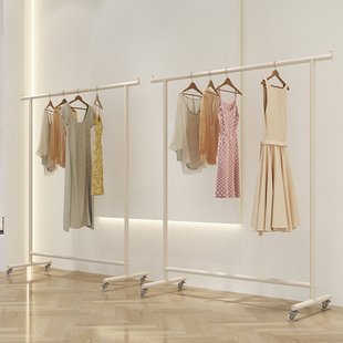 挂衣架童装 店展示架陈列架中岛落地式 带轮可移动货架 服装 奶白女装