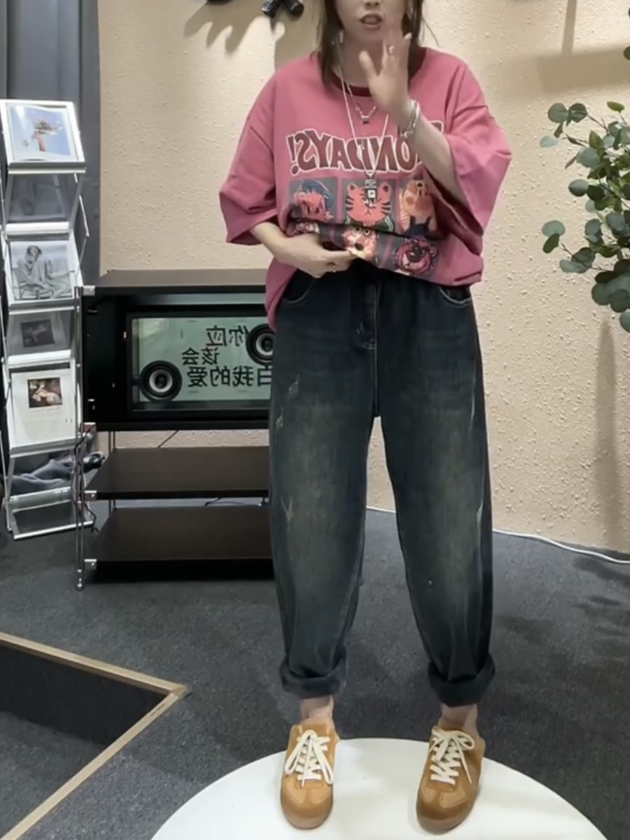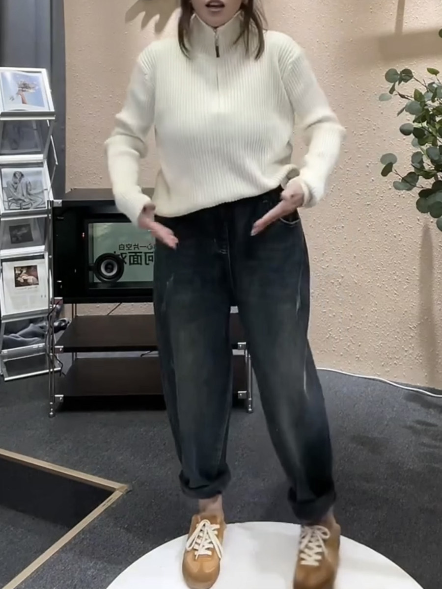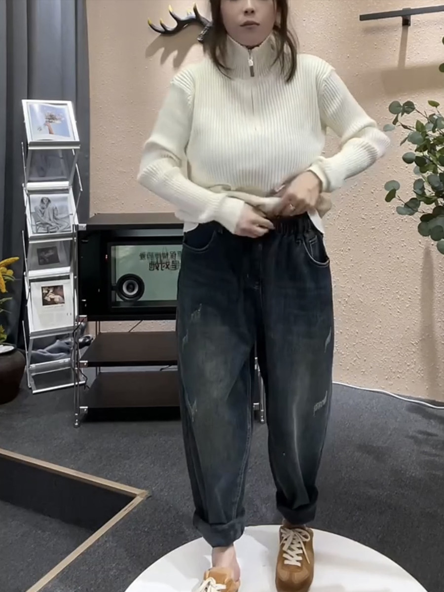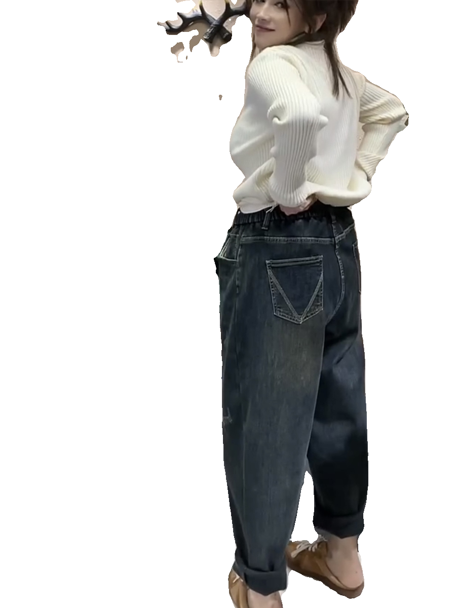 九分 女洋气百搭复古松紧腰牛仔哈伦裤 2025冬季 加绒加厚宽松老爹裤