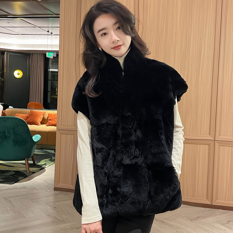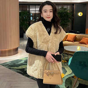 简约风宽松版 型毛绒外套百搭獭兔皮毛一体立领马甲女气质减龄皮草
