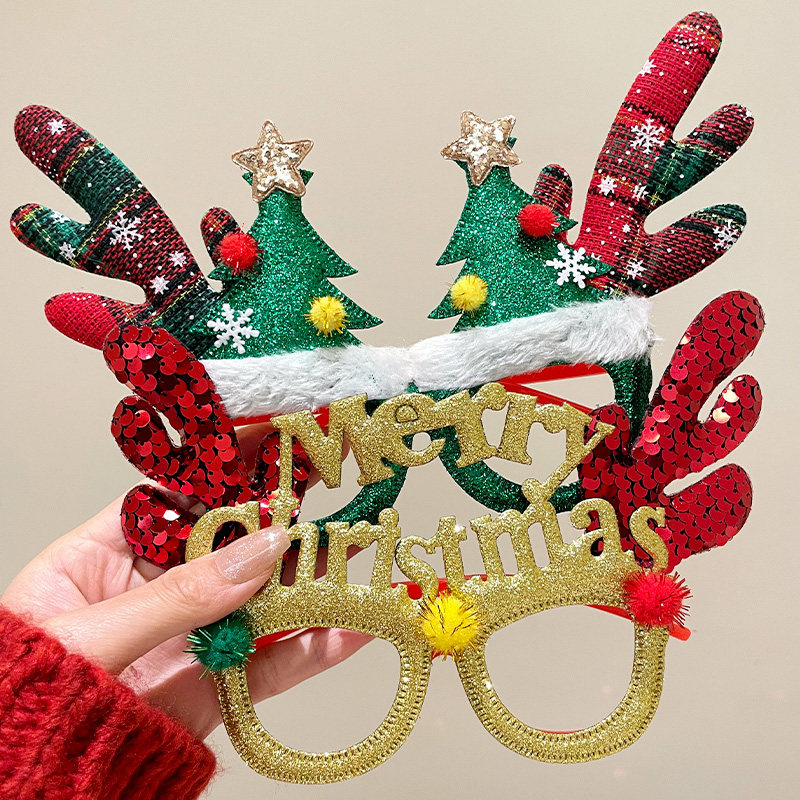 圣诞树头顶材料包饰头发绿毛条圣诞节氛围装 饰 饰品妆扮拍照道具装